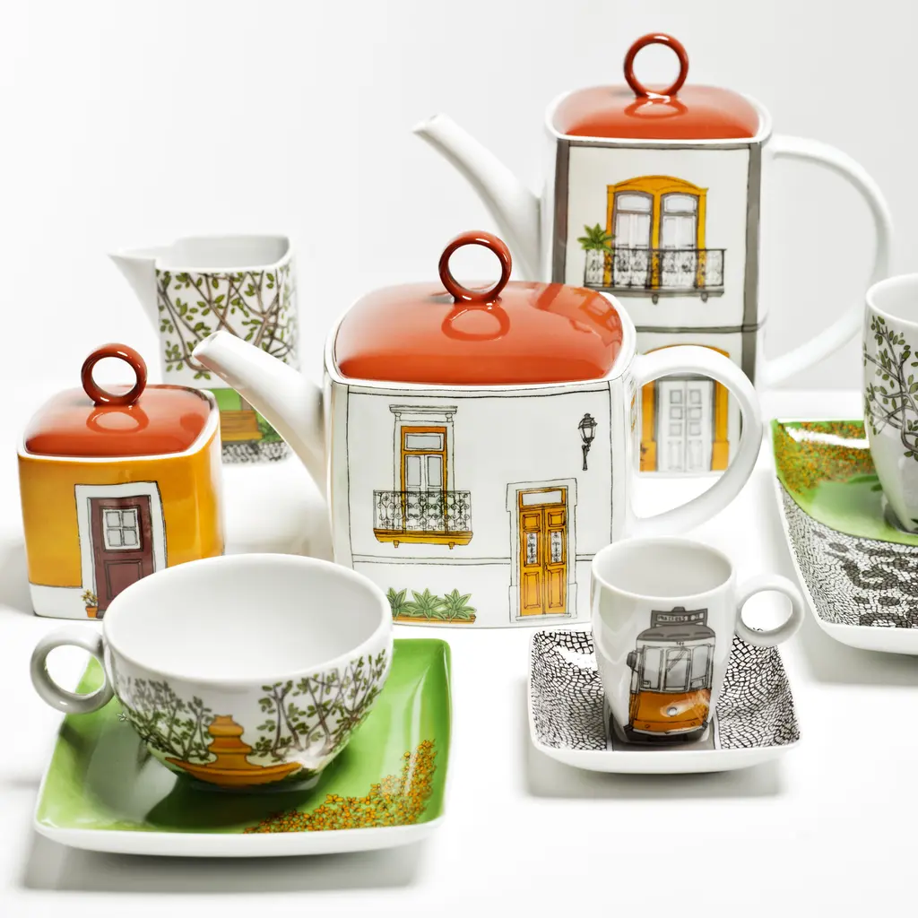 Travel to Lisbon without even leaving your dining table with the Alma de Lisboa tableware collection. Designer Beatriz Lamanna recreated architectural and cultural gems from the Portuguese capital in painted illustrations on Vista Alegre porcelain. Colorful and beautifully detailed, the artistic designs bring a vibrant accent to any kitchen and dining room. The collection features various snippets of Lisbon, from its distinctive architecture and traditional mosaics to iconic landmarks. Like other Vista Alegre collections, Alma de Lisboa is skillfully made from the finest porcelain. Microwave-safe, this collection is best cleaned by hand but it is safe to clean in the dishwasher occasionally, in short cycles and at lower temperatures.