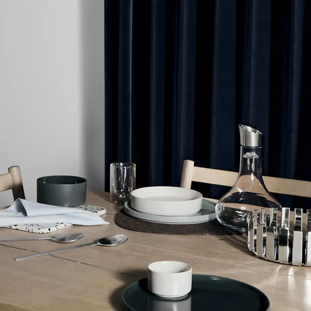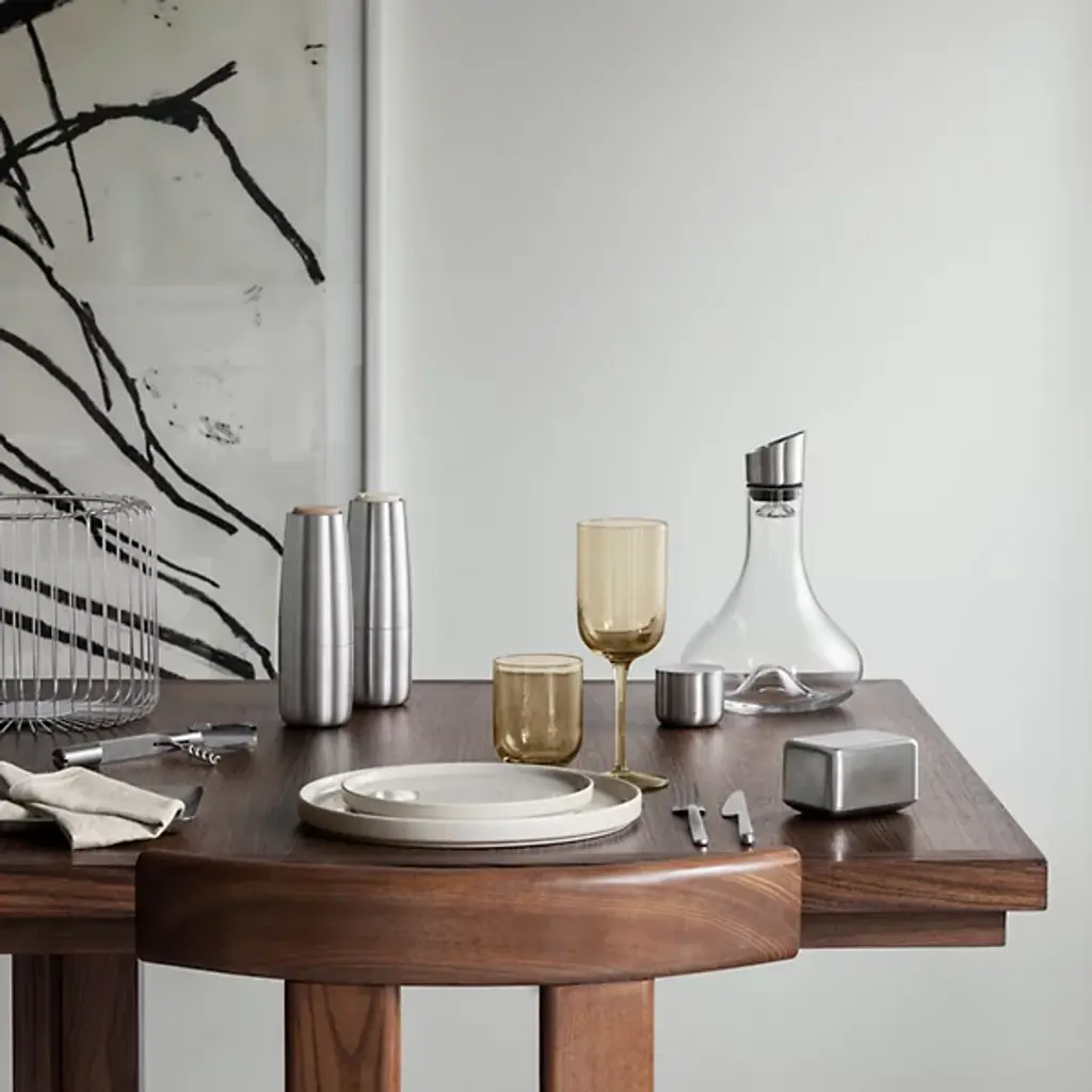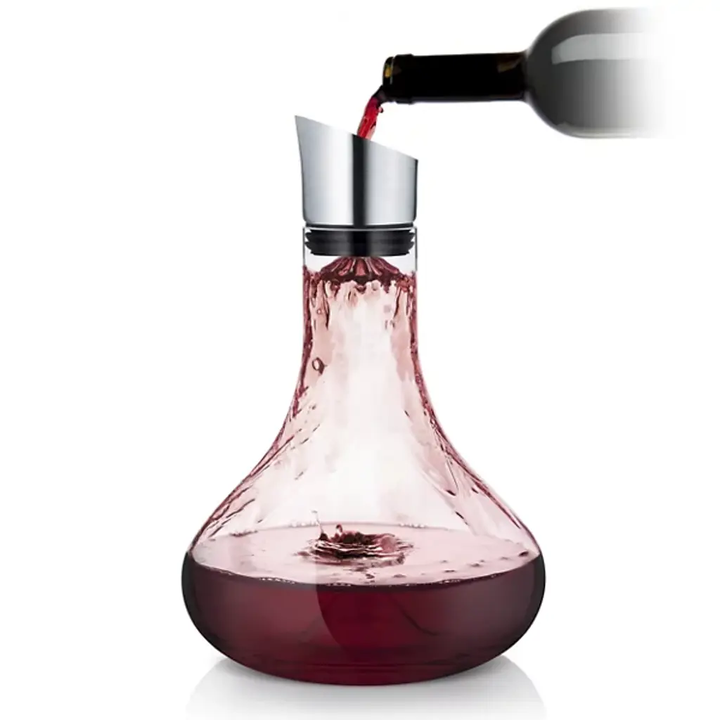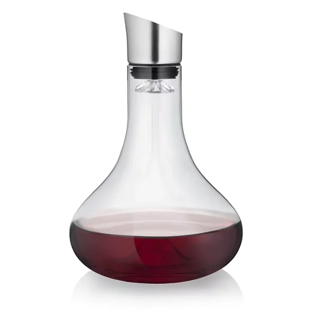 For impressive tabletop style and wine aeration, start with the Blomus ALPHA Decanter. The spout performs double duty by first allowing wine to be poured in freely and breathe in the wide-bottomed glass vessel. Then a screen in the spout filters out any sediment when the wine is poured back out. A trough for the thumb is molded into the glass for a safe grip and comfortable pour.