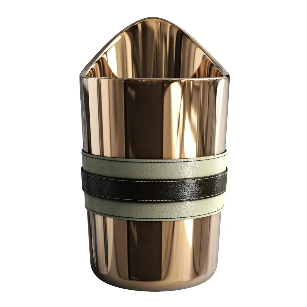 "Alphacute" Ice Bucket With Bronze And Tailor Made Leather Work, Istanbul