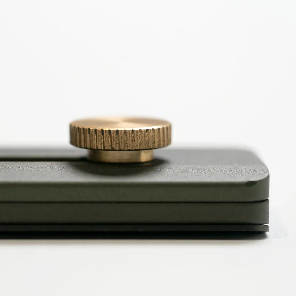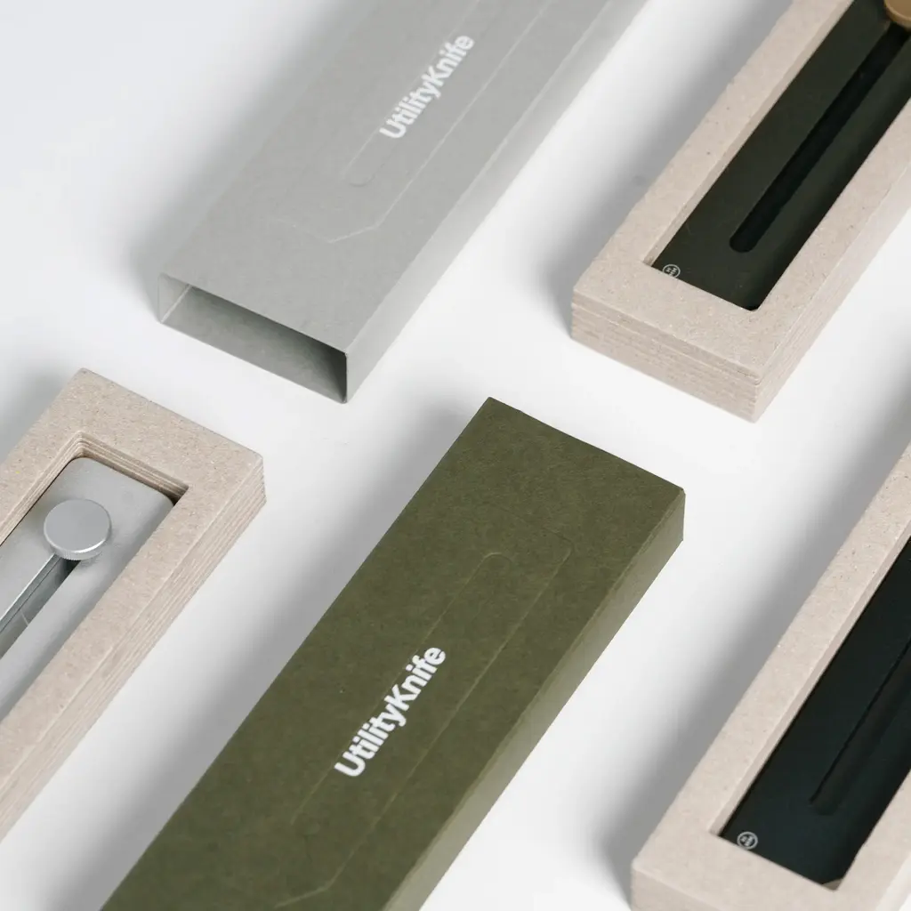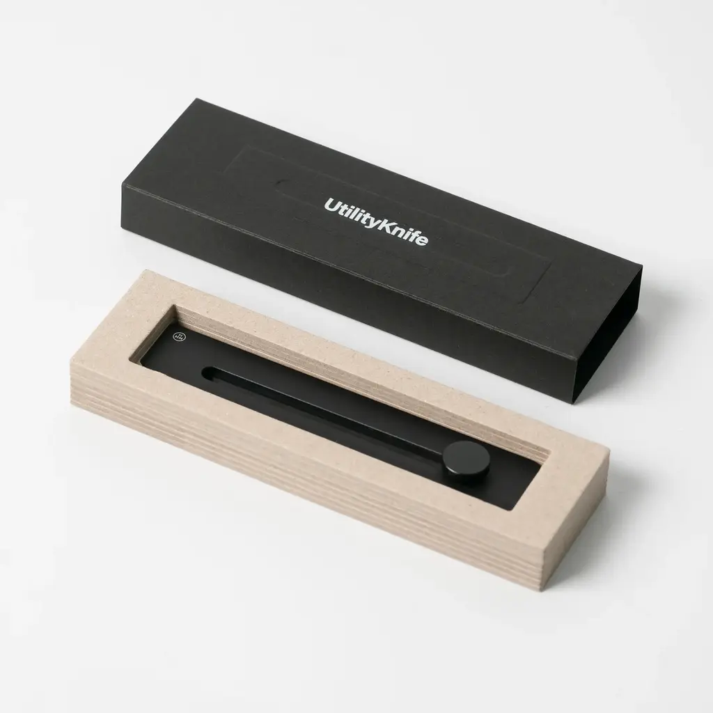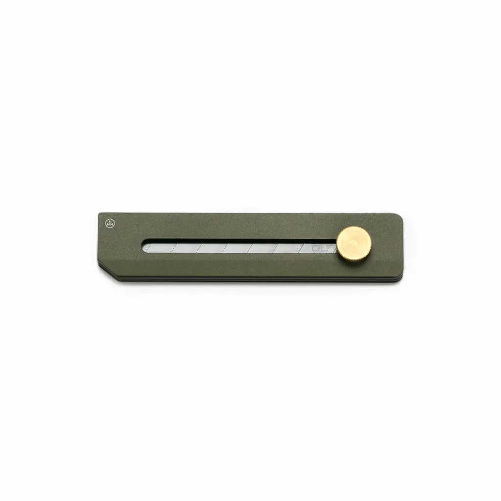The aluminum utility knife is a precision tool designed for artisans, featuring an OLFA large blade and an anodized aluminum body for enhanced stability and control. Its screw mechanism ensures secure blade positioning, making it ideal for product designers, leather crafters, and carpenters. On the reverse side, a magnetic ruler with a 15-degree curvature acts as a protective barrier, reducing accidental cuts. With both imperial and metric measurements, it supports precise measuring and cutting. Weighing only 80g, it is lightweight and portable for on-the-go use. The CNC-processed opening improves cutting accuracy, while the minimalist design ensures it fits seamlessly into any workspace. Available in black, silver, and army finishes, this aluminum utility knife delivers reliability and precision in a compact form.