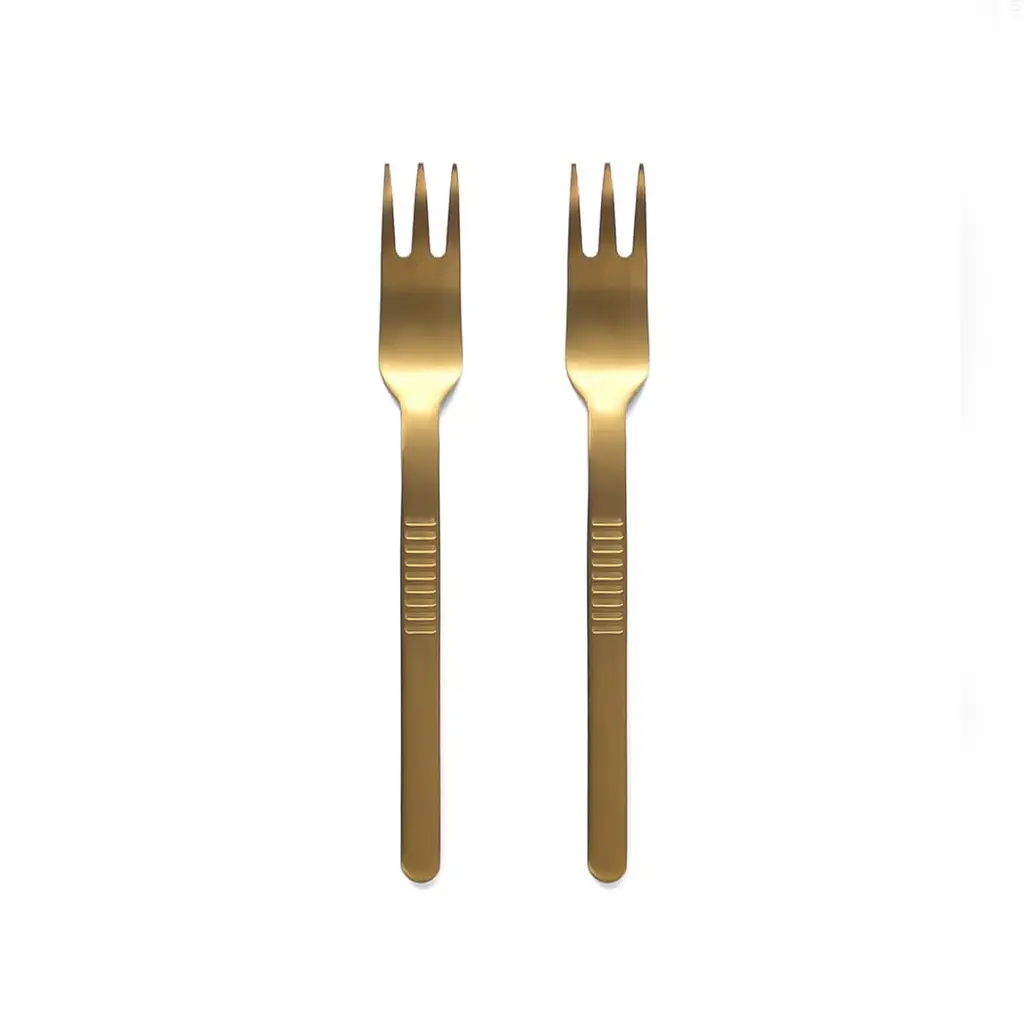 Enjoy any dessert to the max with the Amabro Dessert Fork that is specially designed to make stabbing and slicing delicious treats as smooth as possible. The sharp prongs and the curvature of the fork ensure that you can devour even thick, dense desserts with ease. The minimalist design looks great anywhere, whether you want to use these forks every day or for special occasions. Made from quality stainless steel, the forks boasts a matte brushed finish that minimizes fingerprints. Plus, the Black, Rose Gold and Gold versions feature a durable PVD coating that is not only abrasion-resistant but also hypoallergenic. The Amabro Dessert Fork comes in a set of 2, with matching dessert spoons also available.