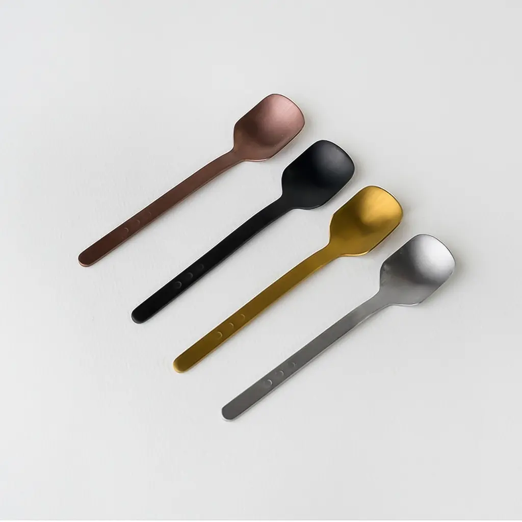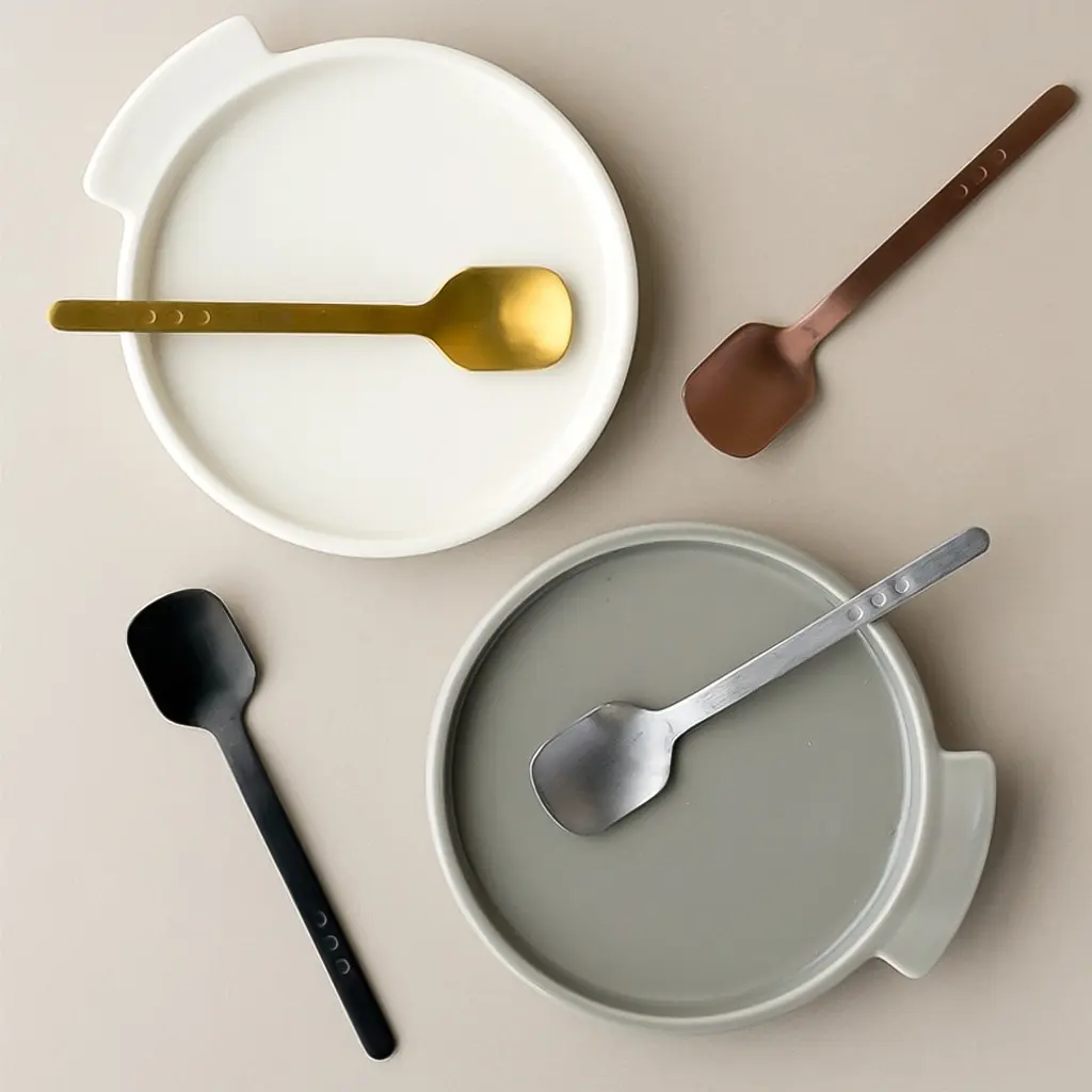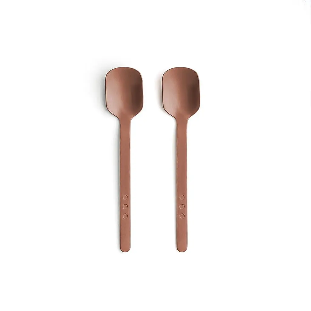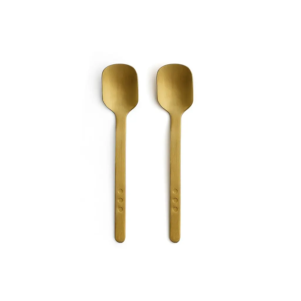 Cakes, pies, tarts, mousse, or ice cream. The Amabro Dessert Spoon improves the tasting experience of any dessert with a perfectly sized bowl and a tactile brushed finish. The minimalist design looks gorgeous in any kitchen or dining area, combining a modern, rectangular-shaped bowl with curved sides and a handle with circular detailing. Crafted from durable 430 stainless steel, the spoon features a matte finish that makes fingerprints less noticeable. Apart from classic Silver, this set also comes in Rose Gold, Gold and Black versions finished with an abrasion-resistant and hypoallergenic PVD coating. Use the Amabro Dessert Spoon, Set of 2 on its own or pair it with the matching dessert fork set.