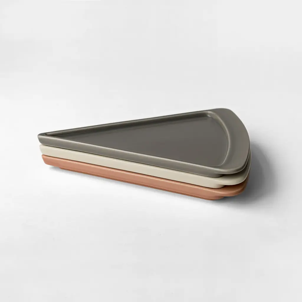Introducing a playful plate shaped like a shortcake, divided into equal parts like slices: Arrange eight of these plates in a circle or two plates upside down for a horizontal arrangement, creating a puzzle-like effect on your table. The flat shape allows for easy stacking, optimizing storage space. With its matte, calm colors, this plate complements sweets like cakes perfectly. Its convenient size makes it versatile for serving snacks alongside drinks or as a regular serving plate for various purposes.