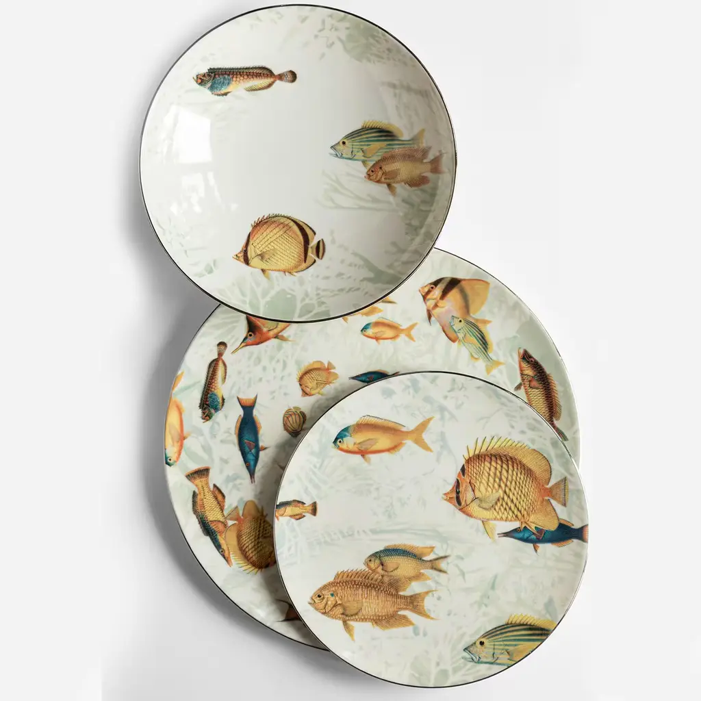 Amami Set Of 2 Porcelain Dessert Plates With Tropical Fish #2