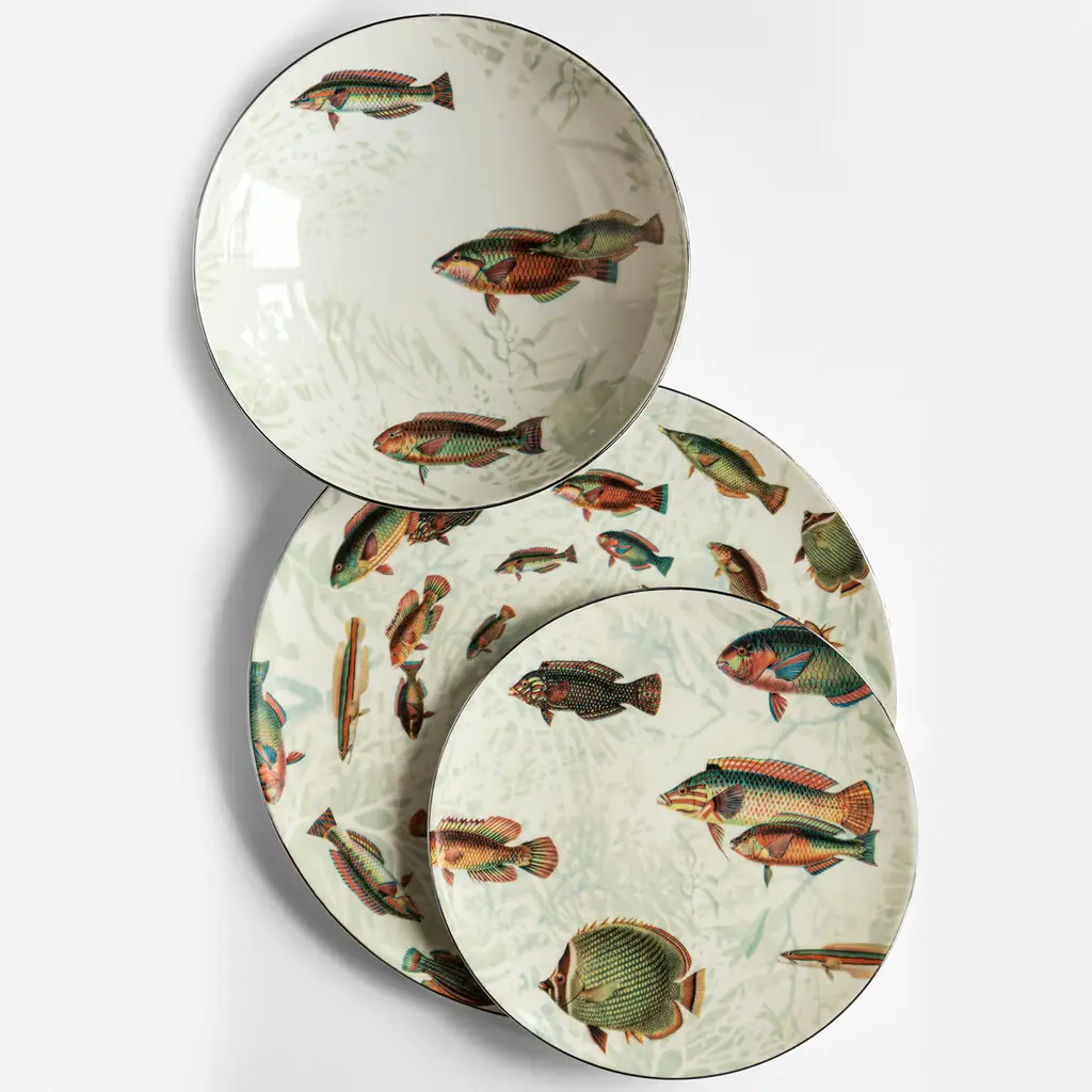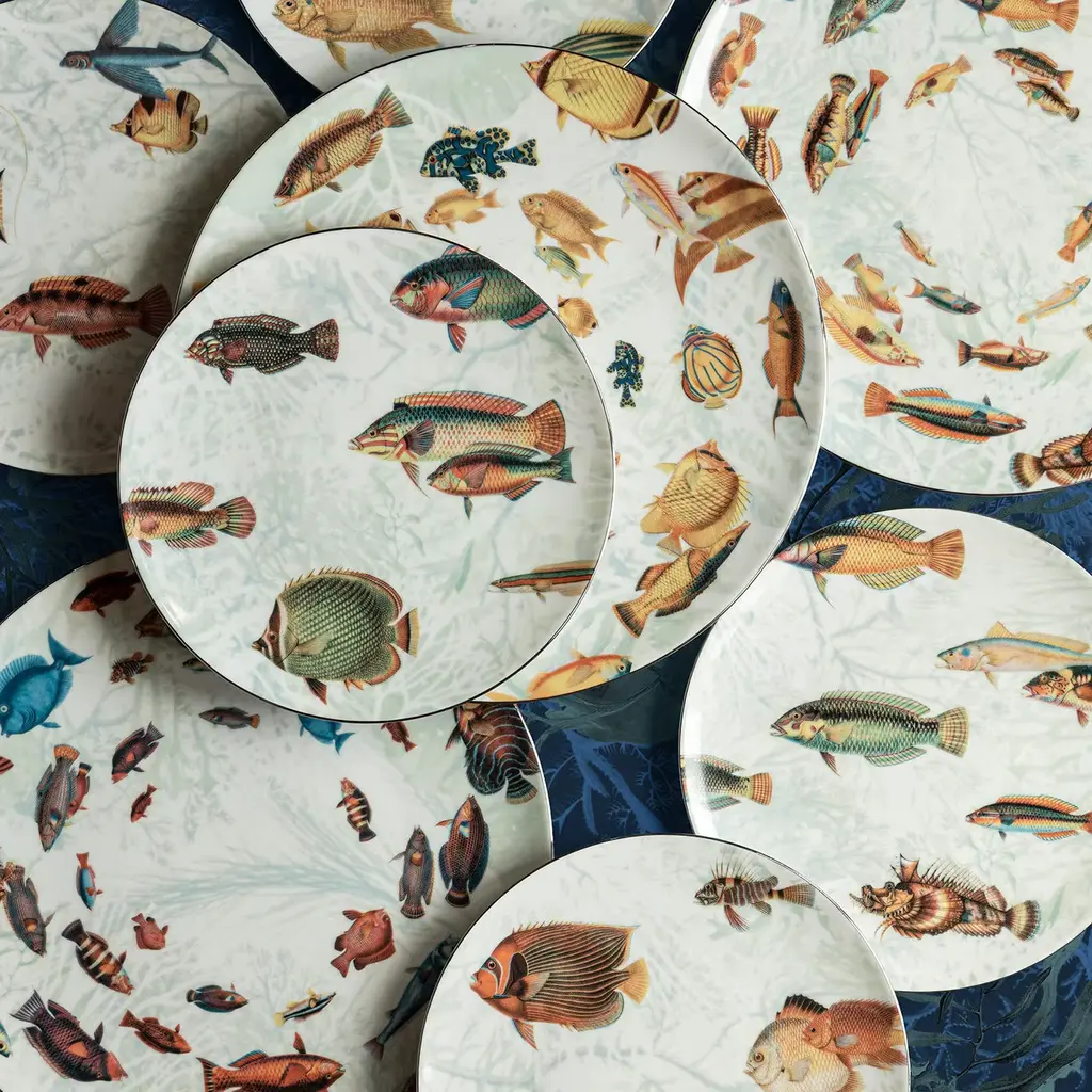 Amami Set Of 2 Porcelain Dessert Plates With Tropical Fish #3