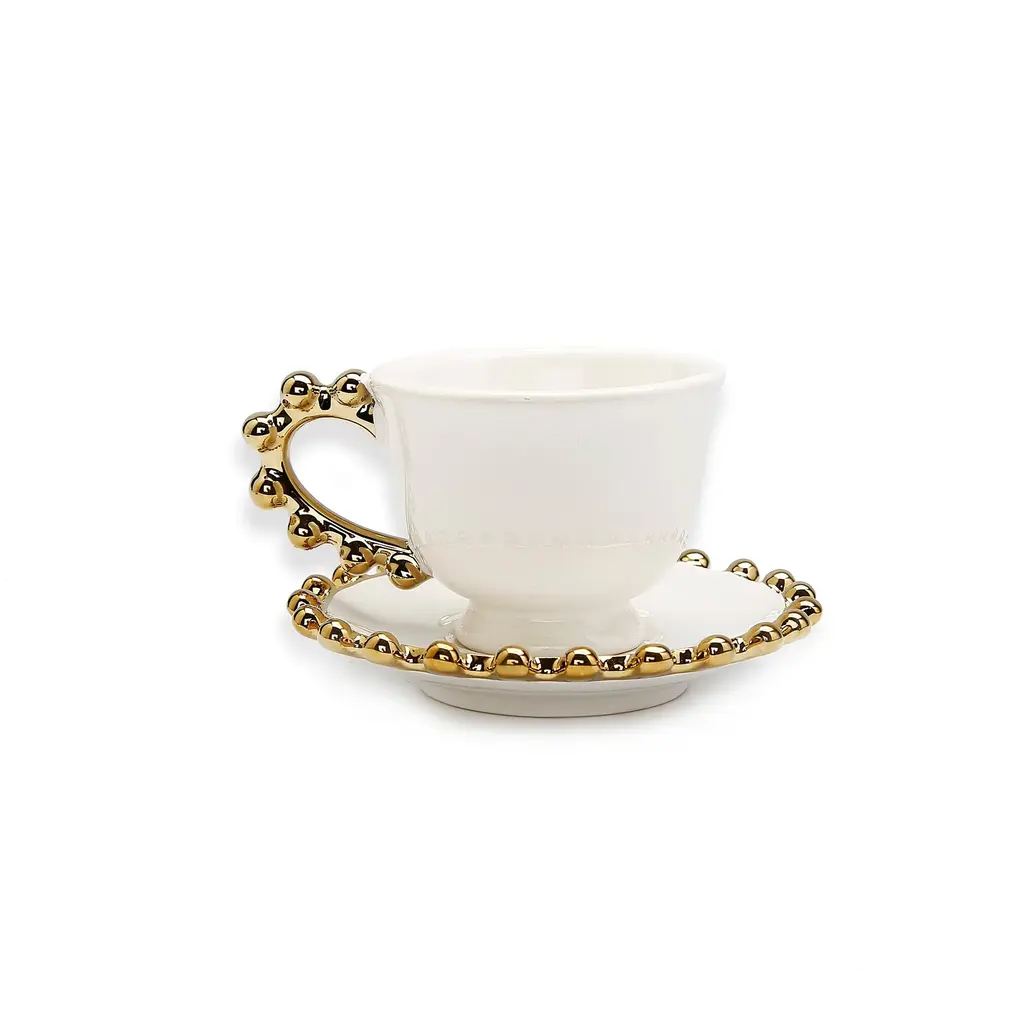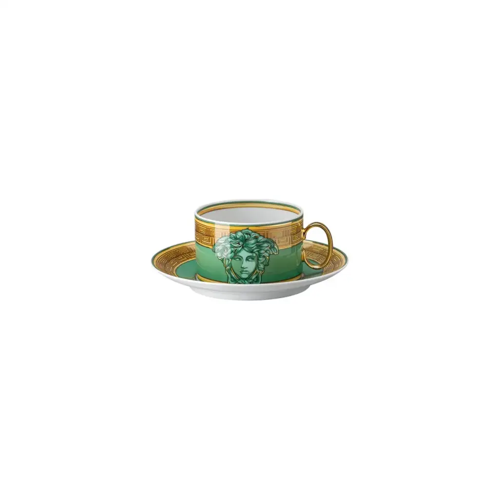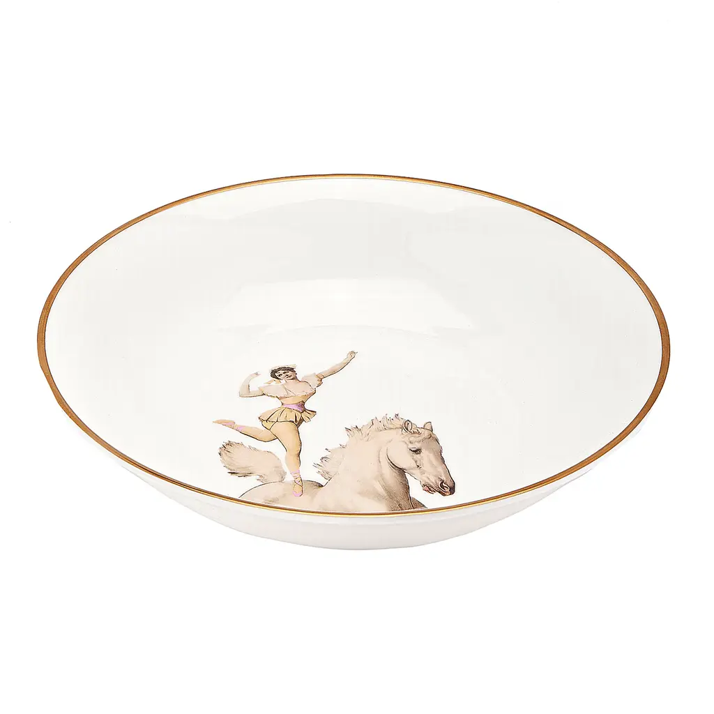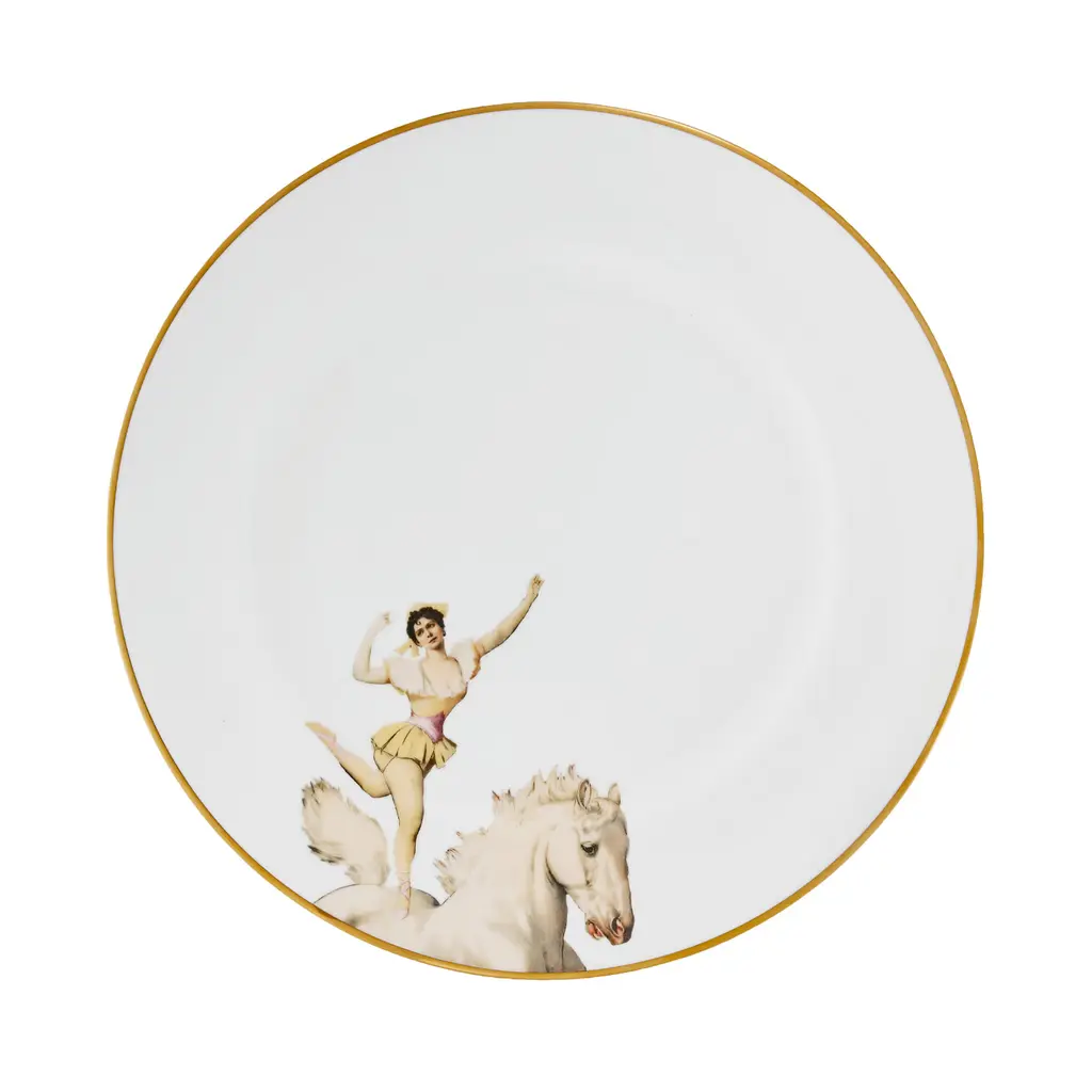Exquisitely handcrafted fine bone china teacup and saucer featuring The Amazing Miss Rose from the Melody Rose's The Show Must Go On collection.Features hand painted 22kt burnished gold for a luxurious and dishwasher friendly finish. In her elegant ballerina outfit, Miss Rose combines beauty and bravery with her amazing acrobatic feats on horseback.Taking its influence from vintage Circus posters and celebrating the thrill of live performance, 'The Show Must Go On' brings the extravagant costumes, colours and buzz of the Big Top straight to the table.Perfect for any occasion, makes a delightful gift on its own or mix, match and layer Melody Rose pieces to create a unique set.