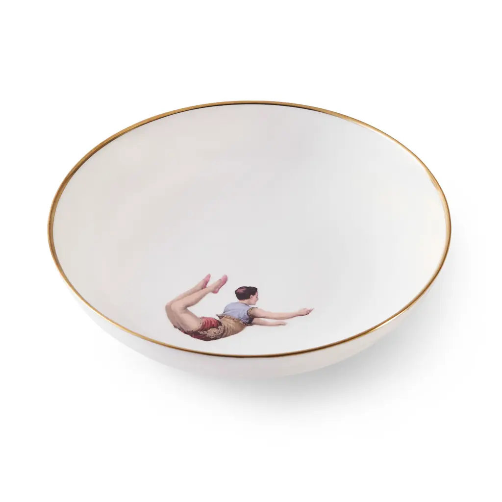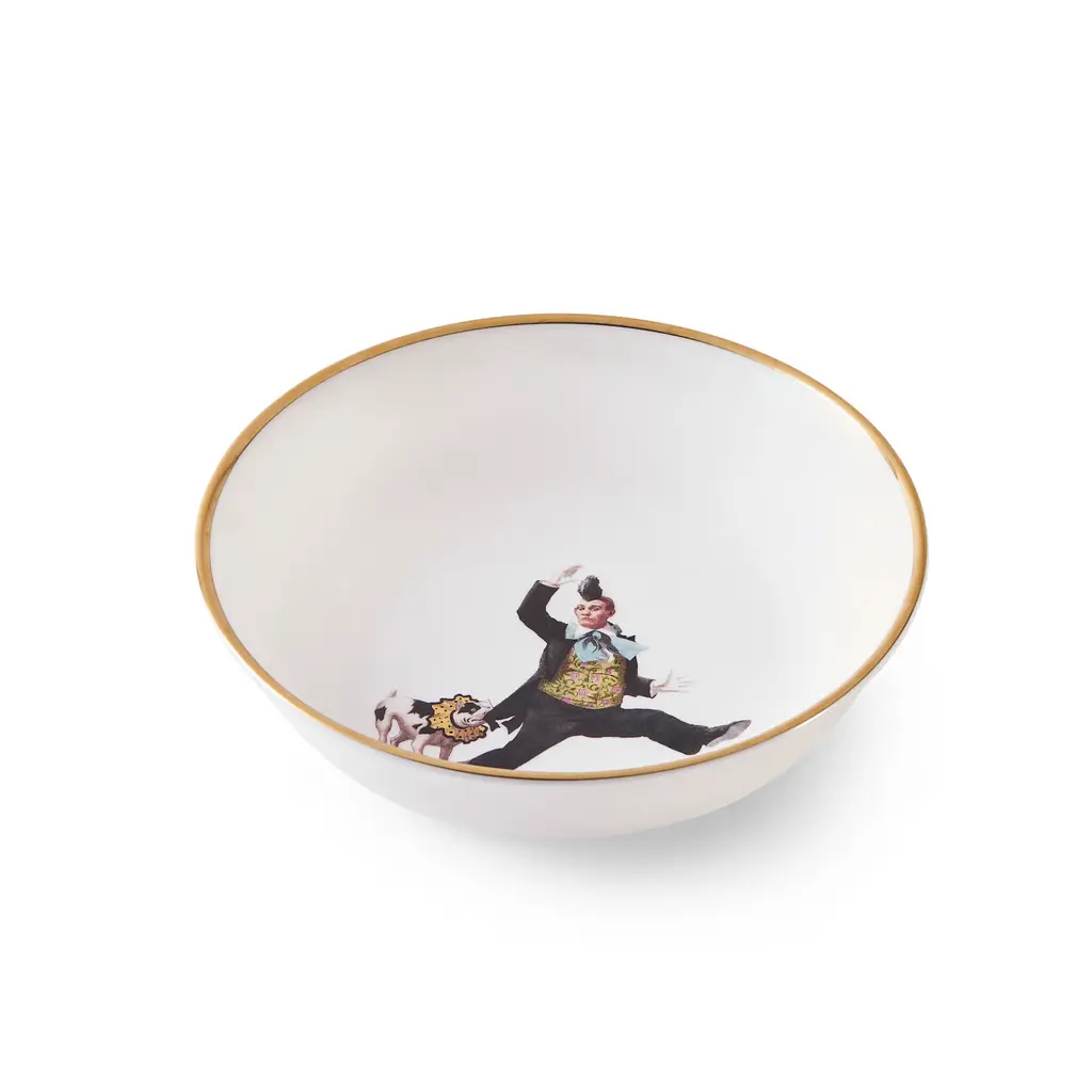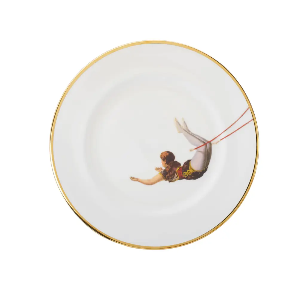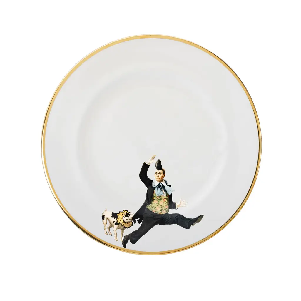 An exquisitely handcrafted fine bone china lunch/salad plate featuring the circus inspired Miss Rose design.Features hand painted 22kt burnished gold edge for luxurious and dishwasher friendly finish.The playful design paired with the best of British craftsmanship makes a wonderful gift for foodie friends and family, design lovers and everyone in between.Perfect on it's own, mix and match with pieces from across the Melody Rose collection to create a unique heritage set with a 21st century twist.