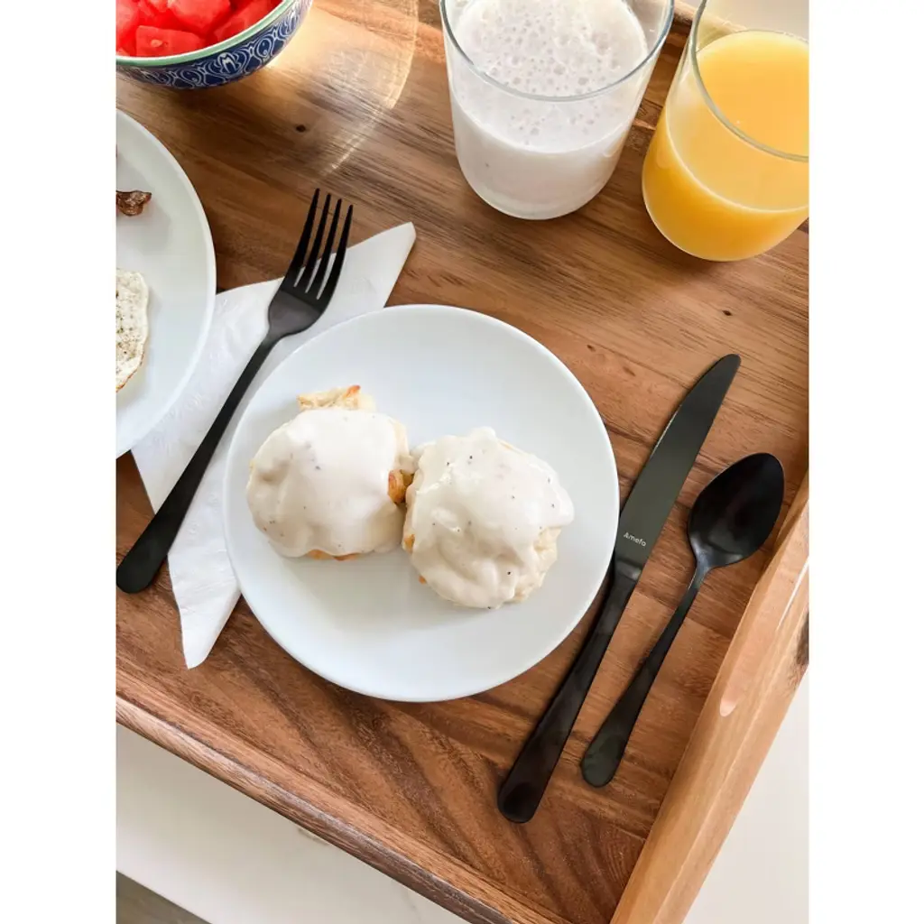 The Austin flatware set has an authentic retro look and elegant shape. The combination of an authentic retro look and an elegant shape makes the set suitable for various table settings, from casual to formal. Influenced by the vintage trend that has inspired us to love our homes, mixing old and new to create a lived-in space with real character and charm. At Amefa, we ‘re proud to bring the vintage look to the table. Made of 18/0 Stainless steel and dishwasher safe, use mild detergents.