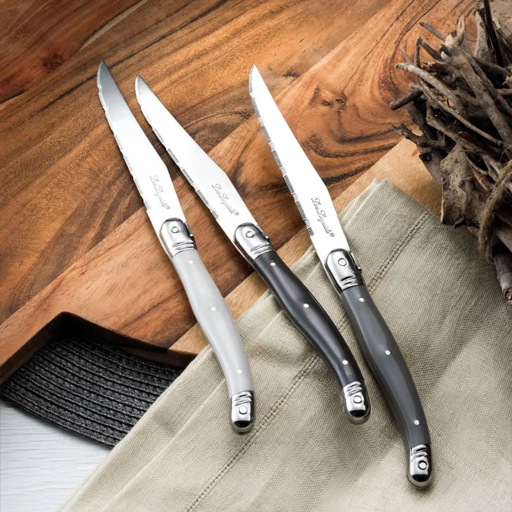 The rustic design of the Tradition flatware set enhances the overall atmosphere, making it well-suited for cozy, informal, or country-style dining settings. Crafted by Lou Laguiole ensures that the flatware set is crafted with precision and attention to detail, providing a high-quality dining utensil. Made of 18/0 stainless steel and dishwasher safe with mild detergents.