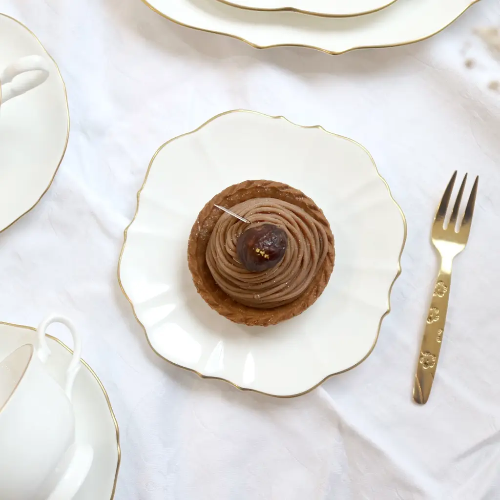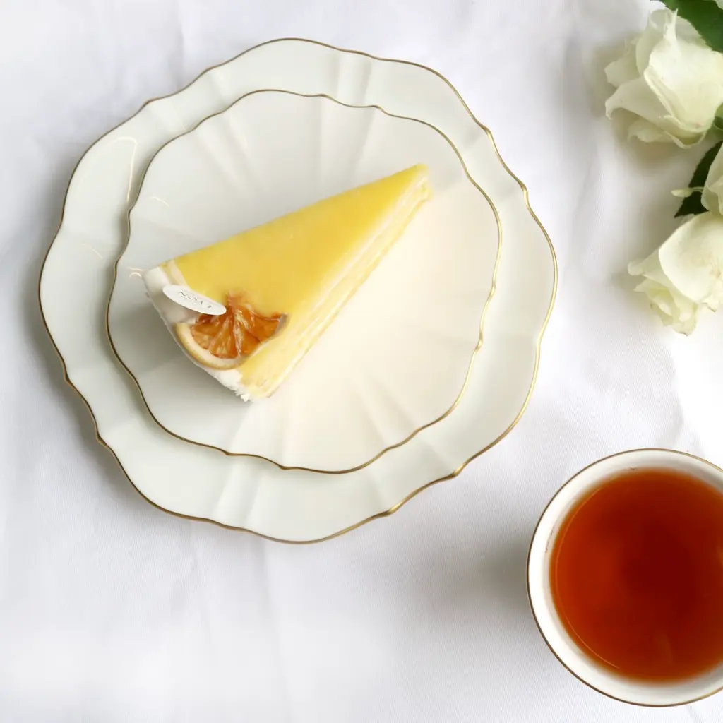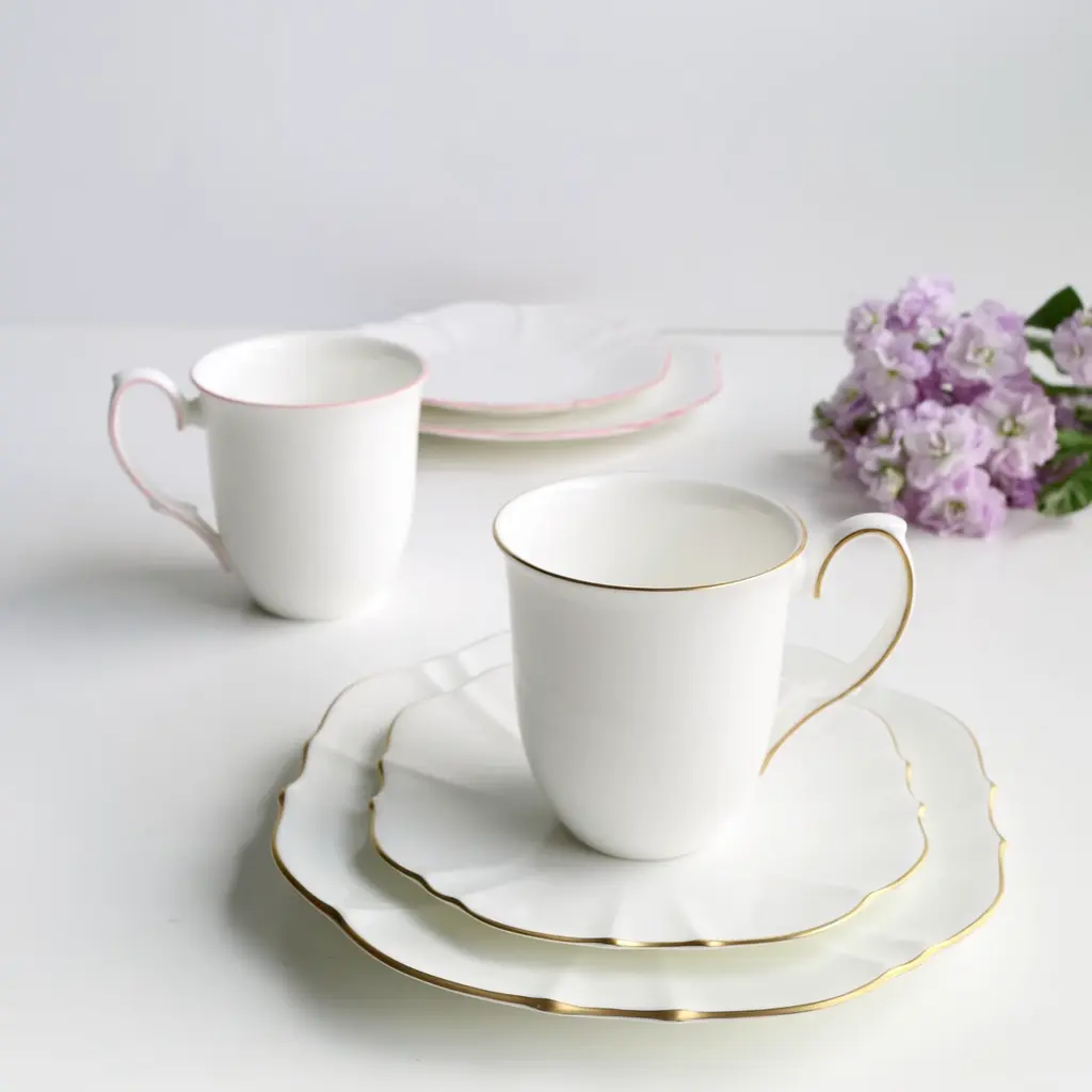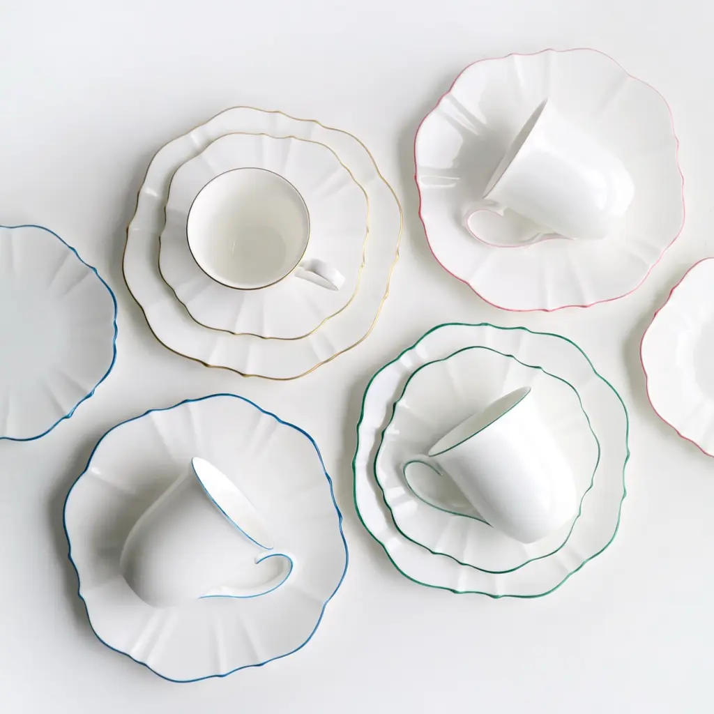 This collection takes its inspiration from the beloved movie character and melds the contradictions of her personality into one unique collection. The Amelie Collection features beautifully shaped dishes that truly stand out but counters this with the striking simplicity of white of Fine Bone China with a hand-painted colour as an accent for the rim. Full of possibilities for mixing and matching among different colours to create one’s own personal set.Ideal for serving bread and butterOne plate per box Fine Bone China with 24K Gold hand-painted rimAmelie Collection