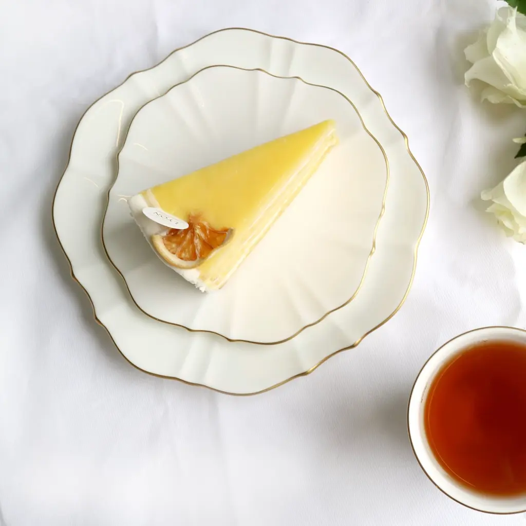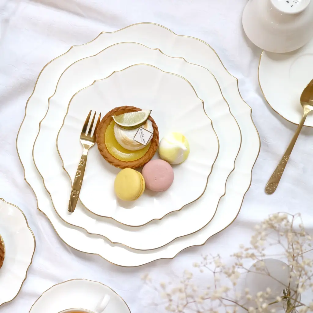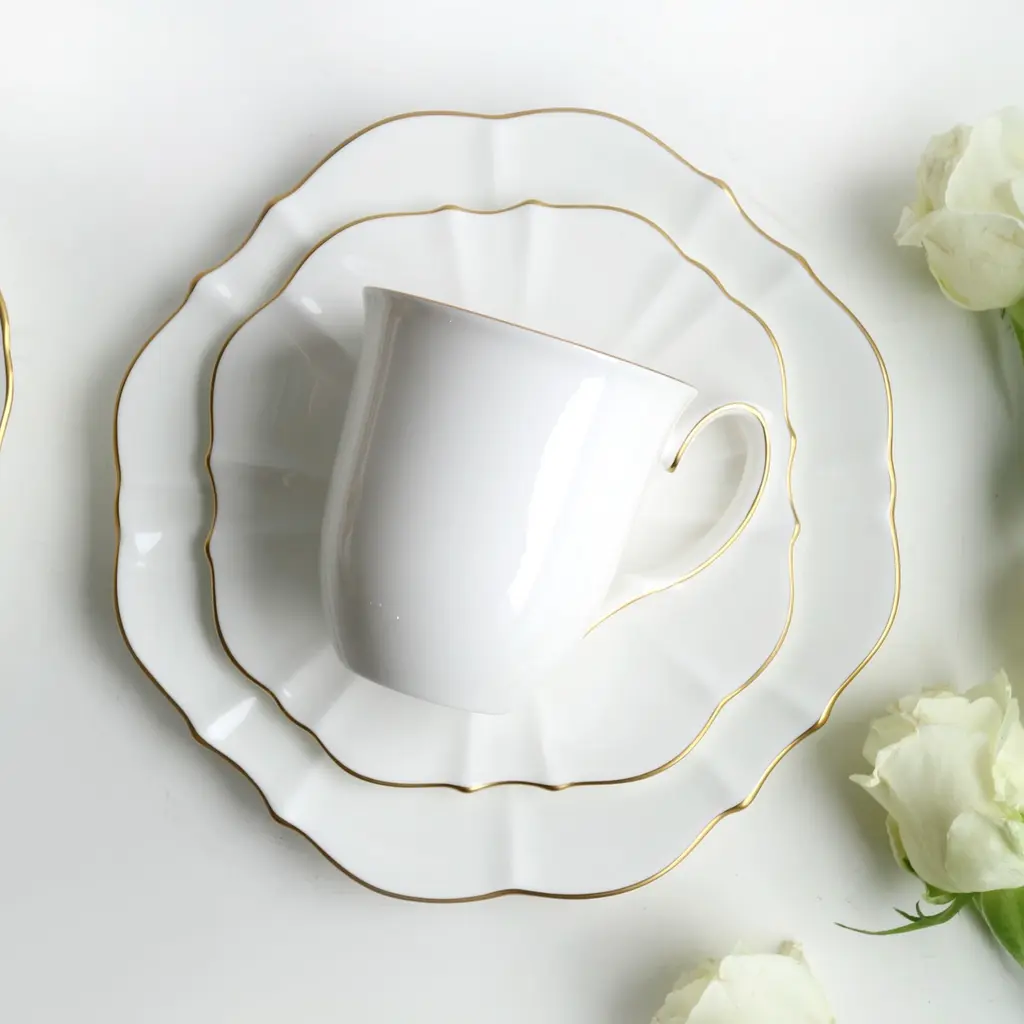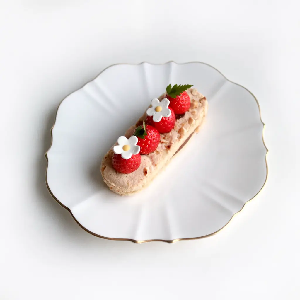This collection takes its inspiration from the beloved movie character and melds the contradictions of her personality into one unique collection. The Amelie Collection features beautifully shaped dishes that truly stand out but counters this with the striking simplicity of white of Fine Bone China with a hand-painted colour as an accent for the rim. Full of possibilities for mixing and matching among different colours to create one’s own personal set.Ideal for salads and dessertsOne plate per box Fine Bone China with 24K Gold hand-painted rimAmelie Collection
