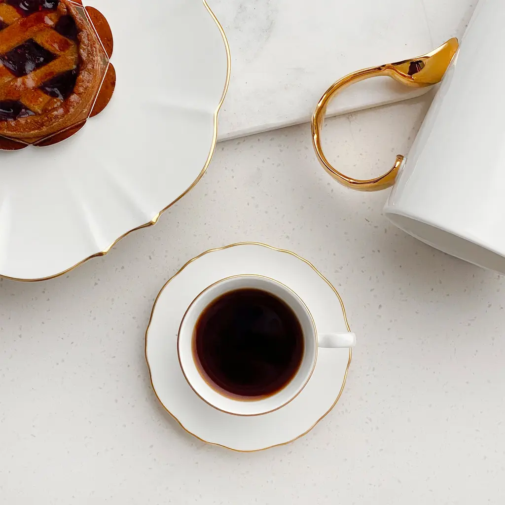 Amelie Brushed Gold Espresso Cup & Saucer, Set Of 2