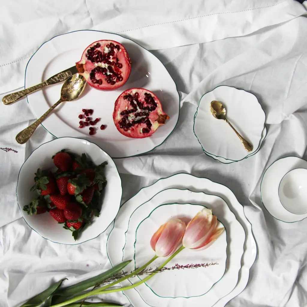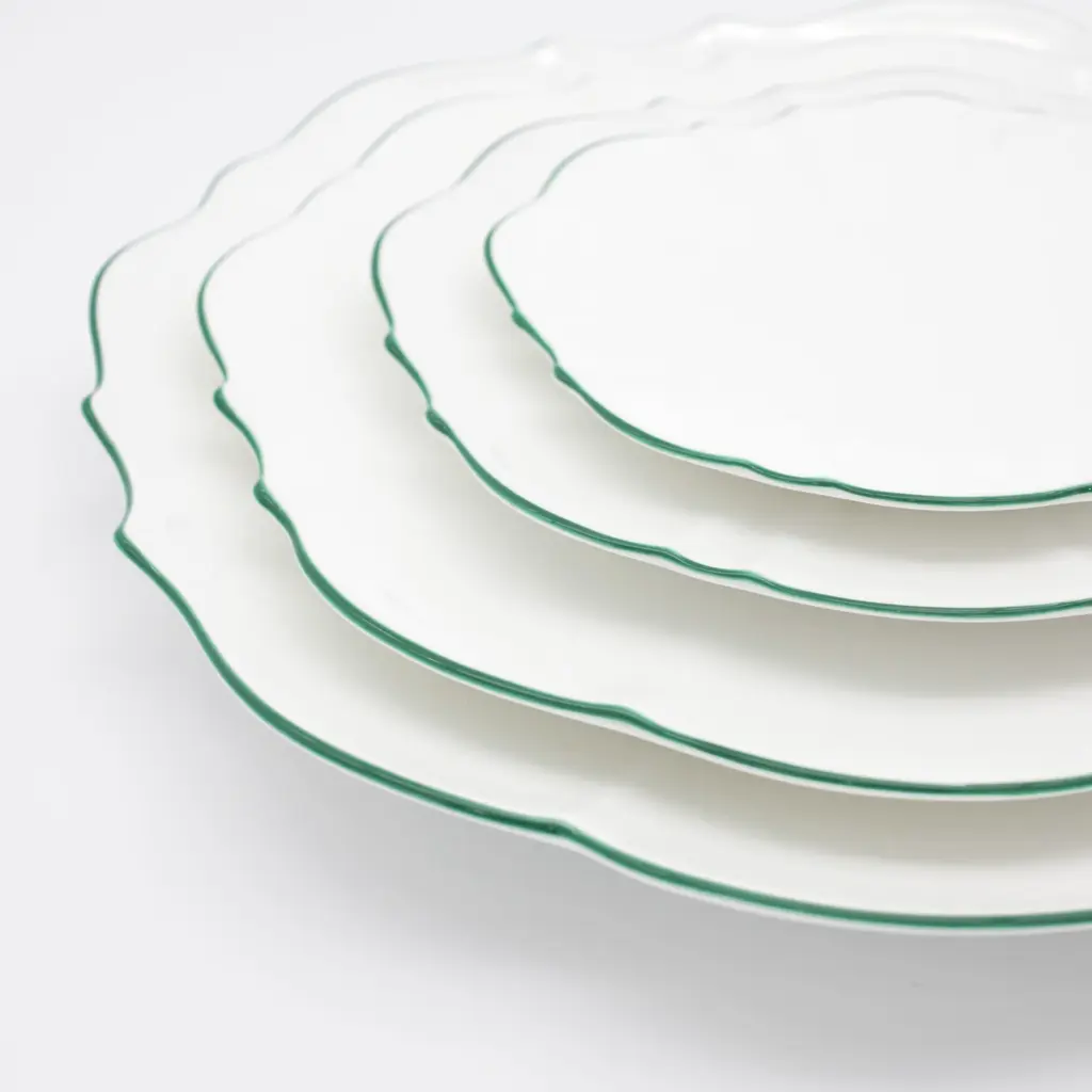 This collection takes its inspiration from the beloved movie character and melds the contradictions of her personality into one unique collection. The Amelie Collection features beautifully shaped dishes that truly stand out but counters this with the striking simplicity of white of Fine Bone China with a hand-painted colour as an accent for the rim. Full of possibilities for mixing and matching among different colours to create one’s own personal set.Ideal for servingOne plate per box Fine Bone China with hand-painted rimAmelie Collection