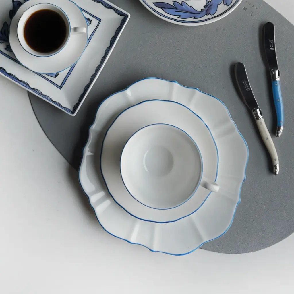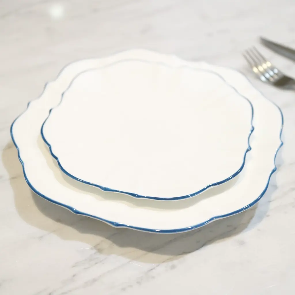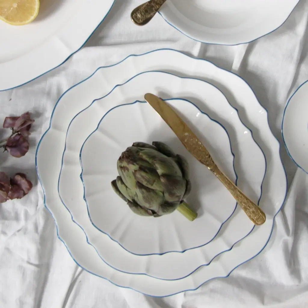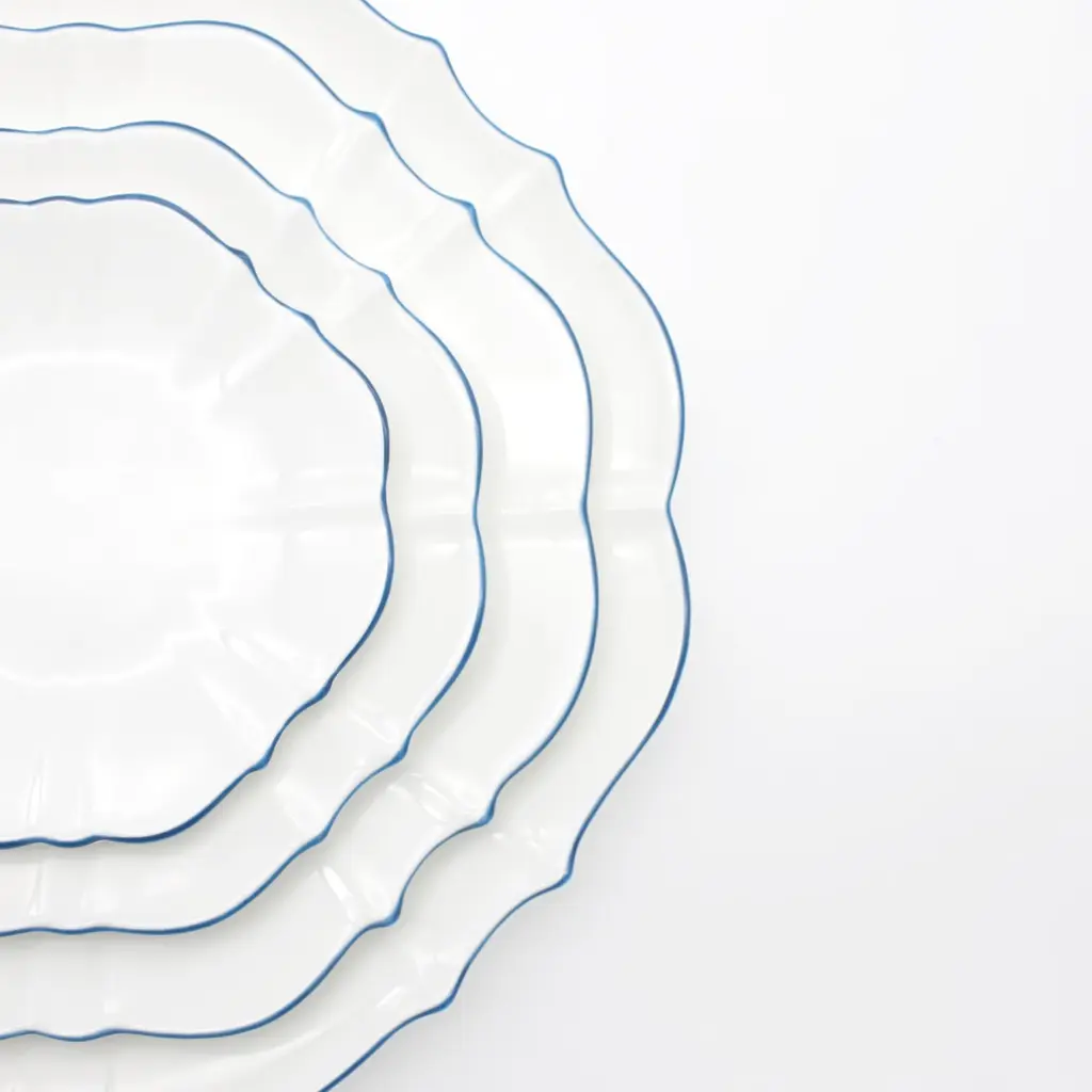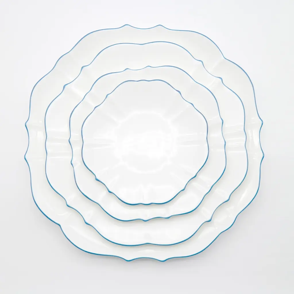 This collection takes its inspiration from the beloved movie character and melds the contradictions of her personality into one unique collection. The Amelie Collection features beautifully shaped dishes that truly stand out but counters this with the striking simplicity of white of Fine Bone China with a hand-painted colour as an accent for the rim. Full of possibilities for mixing and matching among different colours to create one’s own personal set.Ideal for serving entréesOne plate per box Fine Bone China with hand-painted rimAmelie Collection