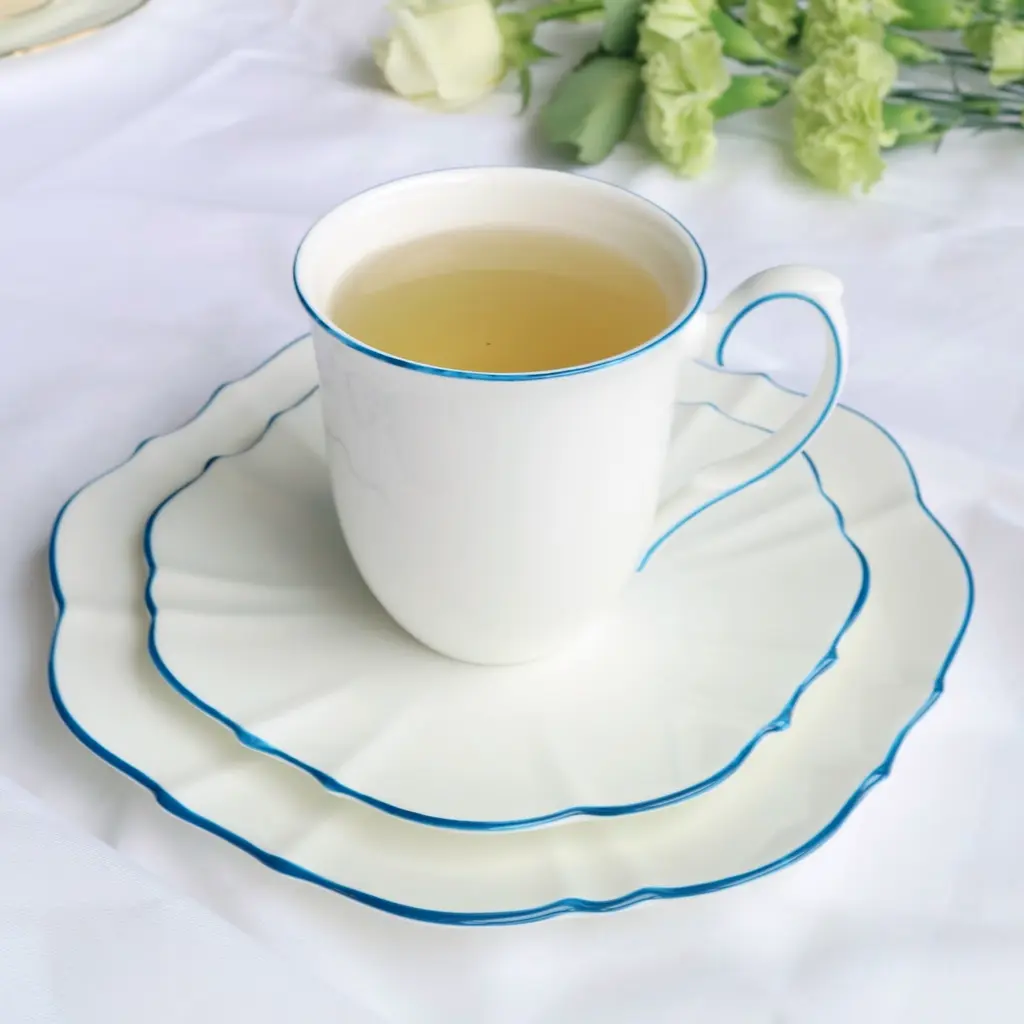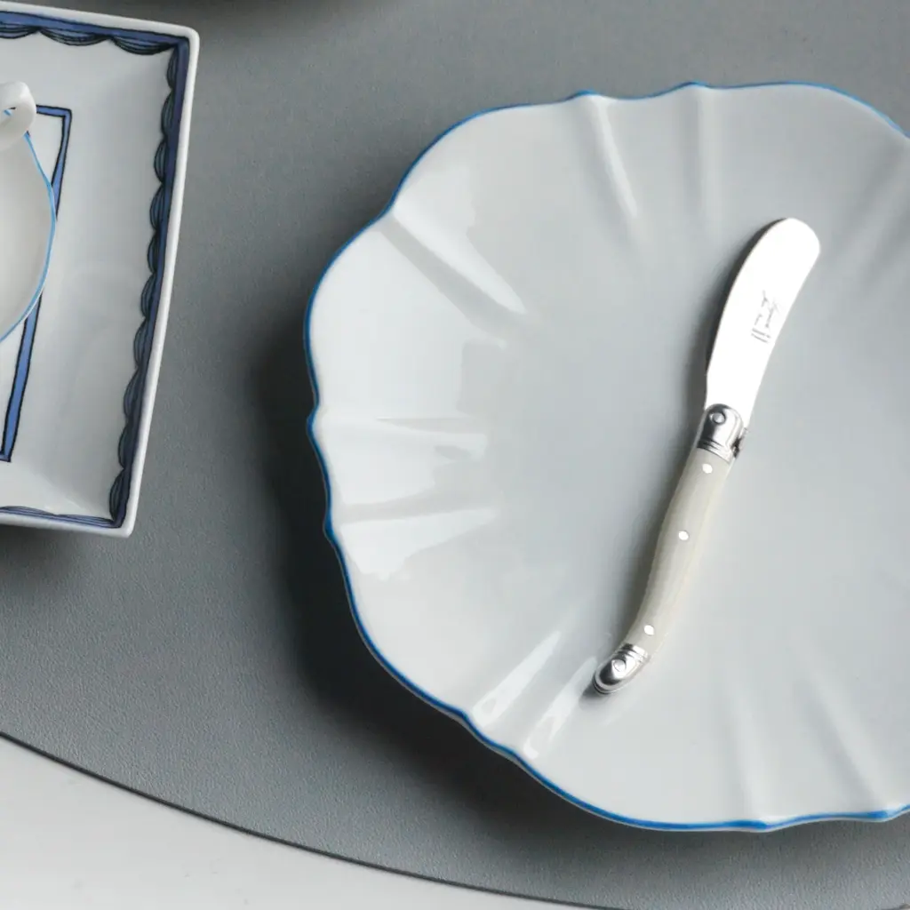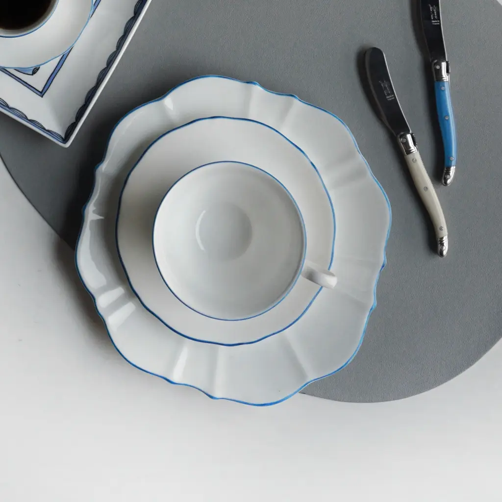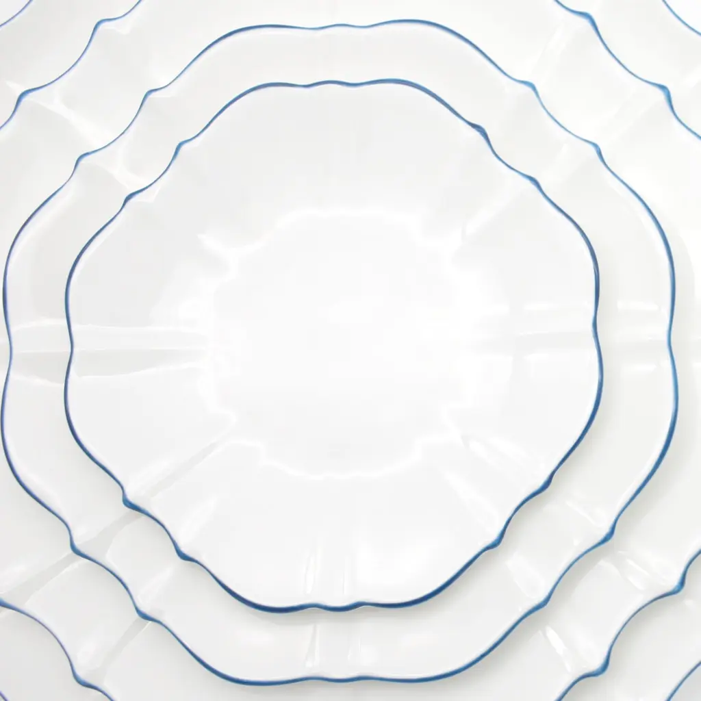 This collection takes its inspiration from the beloved movie character and melds the contradictions of her personality into one unique collection. The Amelie Collection features beautifully shaped dishes that truly stand out but counters this with the striking simplicity of white of Fine Bone China with a hand-painted colour as an accent for the rim. Full of possibilities for mixing and matching among different colours to create one’s own personal set.Ideal for salad and dessertsOne plate per box Fine Bone China with hand-painted rimAmelie Collection