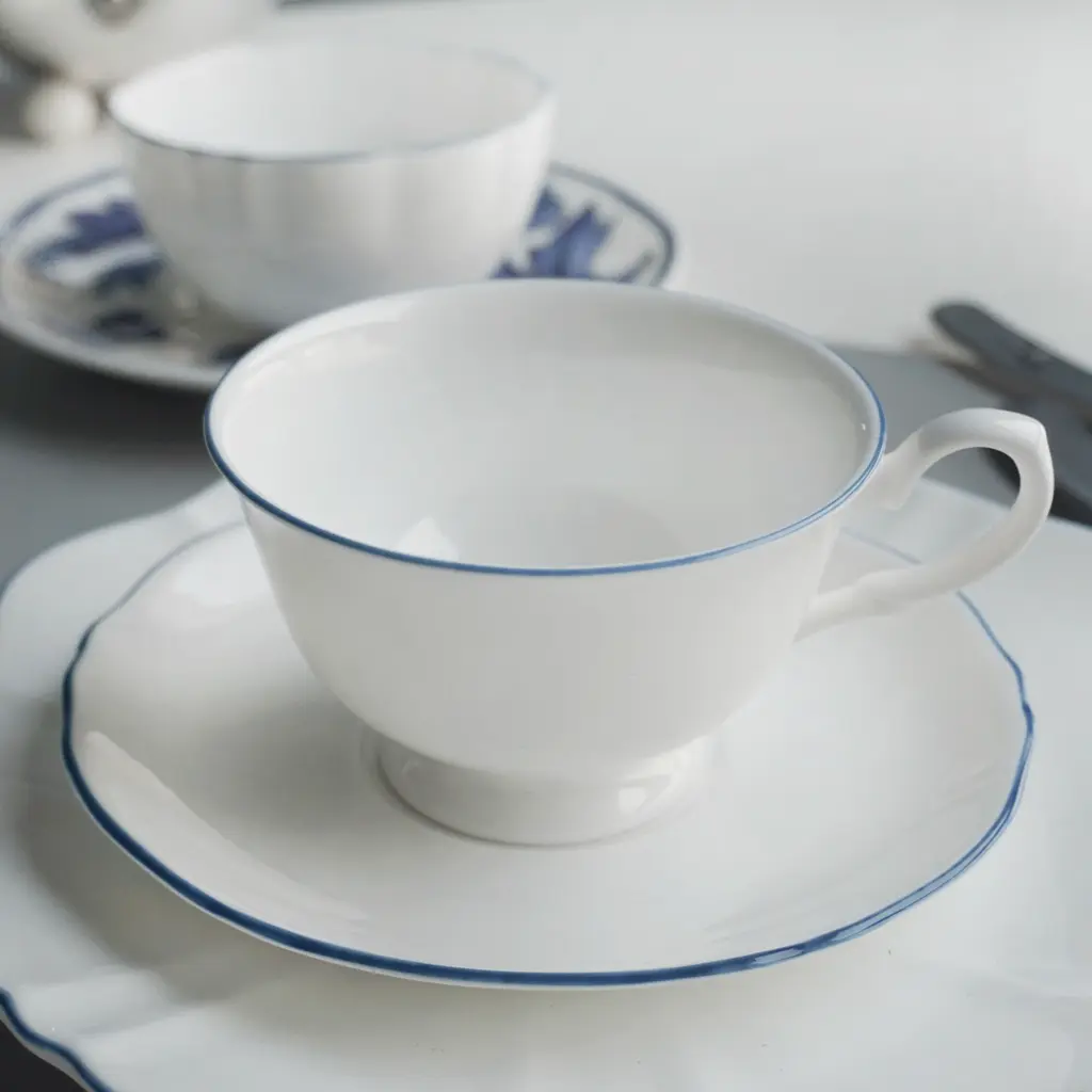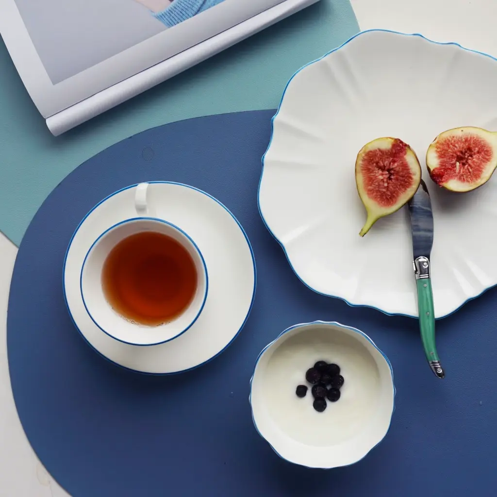 This collection takes its inspiration from the beloved movie character and melds the contradictions of her personality into one unique collection. The Amelie Collection features beautifully shaped dishes that truly stand out but counters this with the striking simplicity of white of Fine Bone China with a hand-painted colour as an accent for the rim. Full of possibilities for mixing and matching among different colours to create one’s own personal set.Ideal for tea and coffeeOne set of two per box Fine Bone China with hand-painted rimAmelie Collection