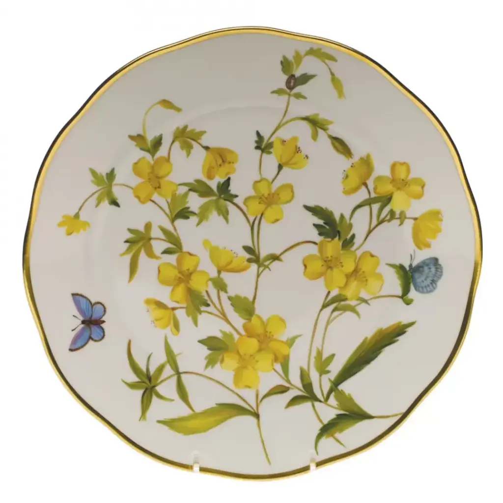 Designed exclusively for the U.S., the stunning American Wildflowers pattern features twelve wildflowers in four colorways: blues, red-oranges, yellows, and pinks. These beautifully detailed botanicals show off the true artistry and meticulous skills of Herend's craftspeople with a colorful and contemporary flair. Hand painted in Hungary. Now the biggest porcelain manufactory in Europe, Herend was founded in 1826 to produce earthenware in the small Hungarian village for which it was named. At the time, Hungary was flooded with low-cost pottery, but in 1839, Mor Fischer became the Manufactory’s new owner and he decided to focus on producing dinnerware replacement pieces for Europe’s royal families to complement their valuable porcelain patterns from Germany and the Far East. As his client base grew, Fischer commissioned his artists to begin designing dinnerware patterns of their own. Queen Victoria’s 1851 purchase of a large set for Windsor Castle was a milestone, setting the stage for aristocrats throughout Europe to clamor for Herend in their estates. In the 1850s, Herend added meticulously-crafted figurines to its creations. Herend’s trademark fishnet pattern, which is widely recognized and prized as Herend’s signature design, started in 1858 when an artist who was intrigued with a Chinese plate’s fish scale design painted it onto a rooster figurine to imitate feathers.