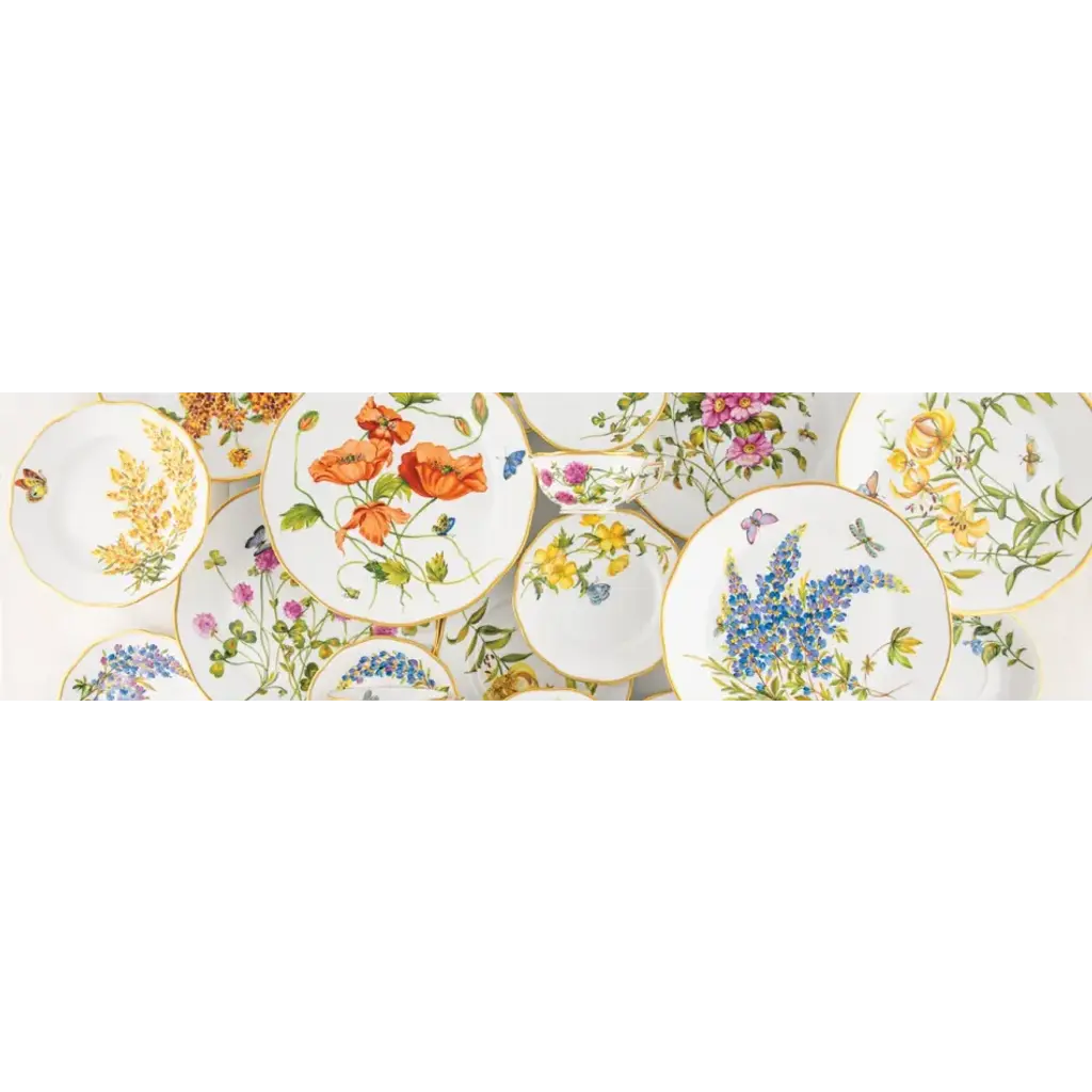 Designed exclusively for the U.S., the stunning American Wildflowers pattern features twelve wildflowers in four colorways: blues, red-oranges, yellows, and pinks. These beautifully detailed botanicals show off the true artistry and meticulous skills of Herend's craftspeople with a colorful and contemporary flair. Hand painted in Hungary. Now the biggest porcelain manufactory in Europe, Herend was founded in 1826 to produce earthenware in the small Hungarian village for which it was named. At the time, Hungary was flooded with low-cost pottery, but in 1839, Mor Fischer became the Manufactory’s new owner and he decided to focus on producing dinnerware replacement pieces for Europe’s royal families to complement their valuable porcelain patterns from Germany and the Far East. As his client base grew, Fischer commissioned his artists to begin designing dinnerware patterns of their own. Queen Victoria’s 1851 purchase of a large set for Windsor Castle was a milestone, setting the stage for aristocrats throughout Europe to clamor for Herend in their estates. In the 1850s, Herend added meticulously-crafted figurines to its creations. Herend’s trademark fishnet pattern, which is widely recognized and prized as Herend’s signature design, started in 1858 when an artist who was intrigued with a Chinese plate’s fish scale design painted it onto a rooster figurine to imitate feathers.