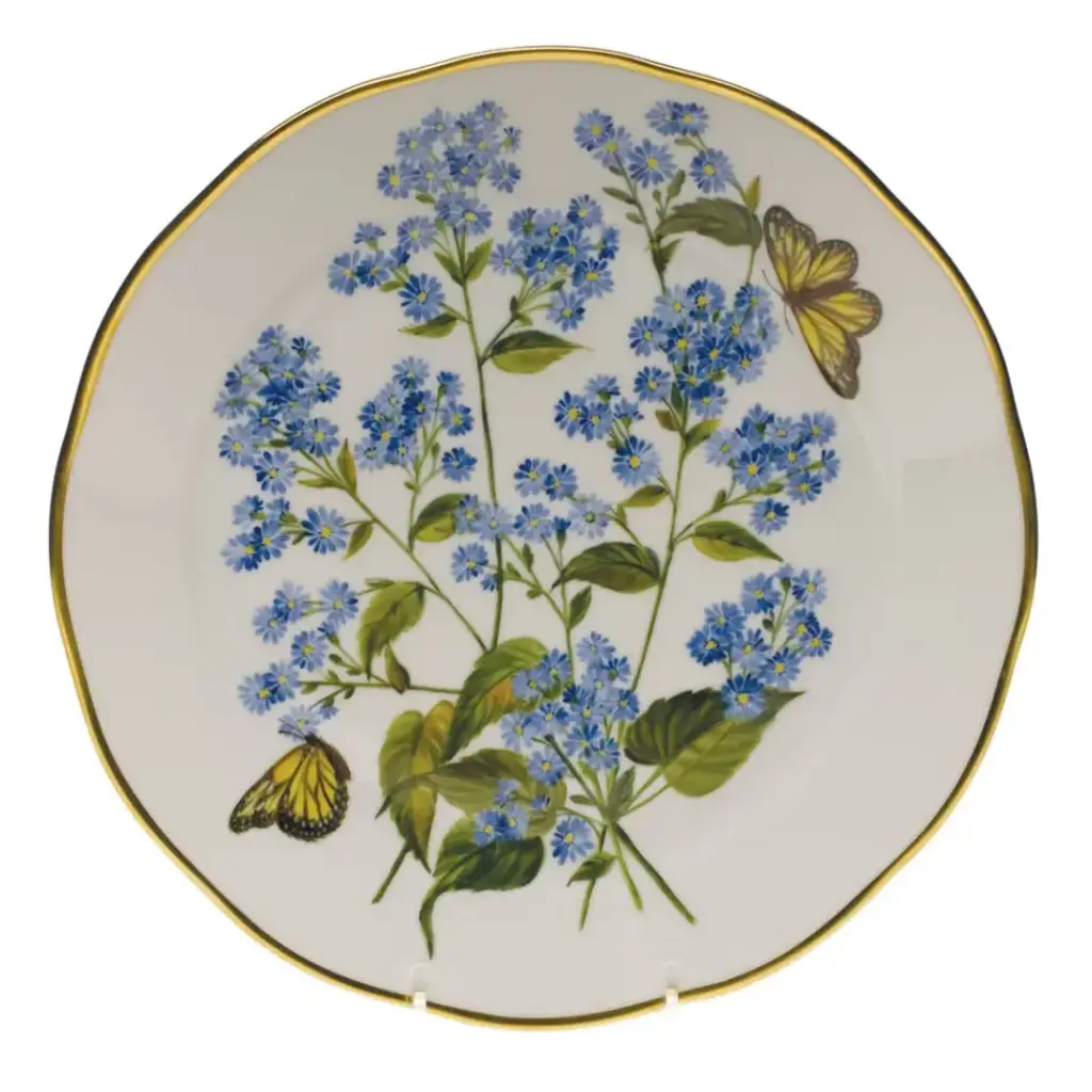Designed exclusively for the U.S., the stunning American Wildflowers pattern features twelve wildflowers in four colorways: blues, red-oranges, yellows, and pinks. These beautifully detailed botanicals show off the true artistry and meticulous skills of Herend's craftspeople with a colorful and contemporary flair. Hand painted in Hungary. Now the biggest porcelain manufactory in Europe, Herend was founded in 1826 to produce earthenware in the small Hungarian village for which it was named. At the time, Hungary was flooded with low-cost pottery, but in 1839, Mor Fischer became the Manufactory’s new owner and he decided to focus on producing dinnerware replacement pieces for Europe’s royal families to complement their valuable porcelain patterns from Germany and the Far East. As his client base grew, Fischer commissioned his artists to begin designing dinnerware patterns of their own. Queen Victoria’s 1851 purchase of a large set for Windsor Castle was a milestone, setting the stage for aristocrats throughout Europe to clamor for Herend in their estates. In the 1850s, Herend added meticulously-crafted figurines to its creations. Herend’s trademark fishnet pattern, which is widely recognized and prized as Herend’s signature design, started in 1858 when an artist who was intrigued with a Chinese plate’s fish scale design painted it onto a rooster figurine to imitate feathers.