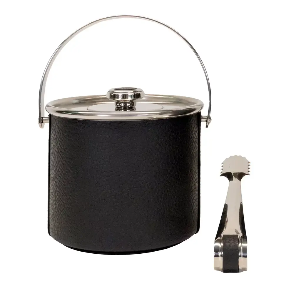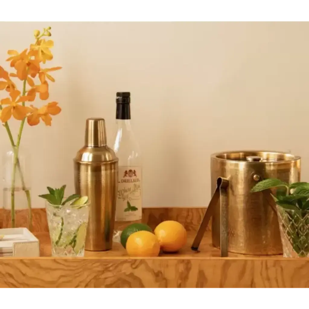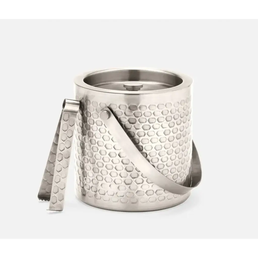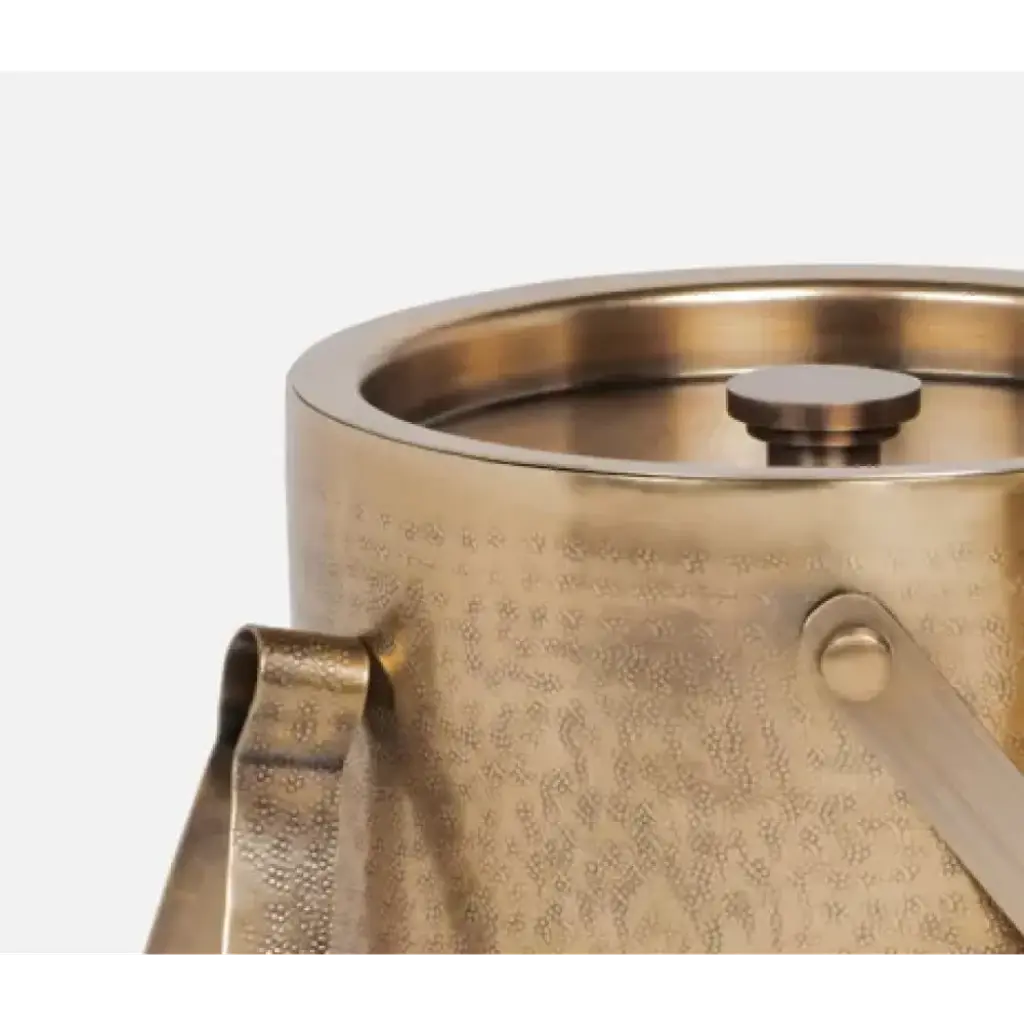 Amherst Antique Brass, Ice Bucket W/ Tongs, Rd, Hammered Stainless Steel