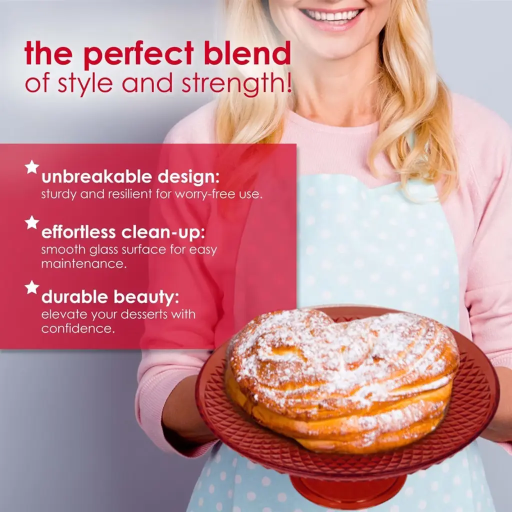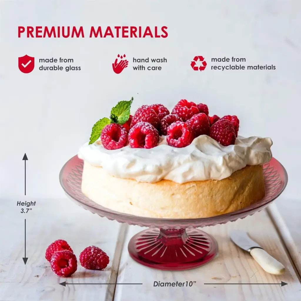 Amici Home Diamond Collection Footed Glass Cake Stand - Vintage Red Dessert Display With Diamond Pattern, 10-inch Soda Lime Glass Pedestal