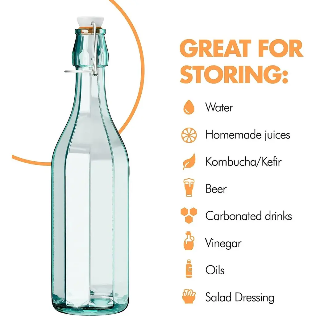 Amici Home Faceted Hermetic Preserving Bottle Small, With Locking Swing Top Lid, Dishwasher Safe, Brewing Bottles for Kombucha, Vanilla Extract, & More, Made in Italy - NewAbout Amici Home: We believe the little things mean something…our mission is to create special moments in your life. Cooking with family or entertaining friends, the kitchen is the most important room in your home and our goal is make products that bring your kitchen to life. We eagerly embrace sustainability and cherish our responsibility to develop products which improve lives and families across the globe. We are driven by innovation — in exploring the boundaries of what’s possible and bring the latest styles to your home. About Product: Faceted Hermetic Glass Preserving Bottle comes with a handy plastic and silicone stopper that will tightly seal your bottle. Our airtight gaskets ensure your beverages won’t oxidize and will stay fresh and tasty much longer. Caps are easy to remove and put on. Use your glass bottle with stopper to store oils, kefir, beverages, kombucha, vinegar, Beer, Water or Soda. Slide in the airtight cap to preserve and maintain freshness of your favorite drinks and liquids. : Coming in a 9 oz,17 oz, and 25 oz size (sold separately) these Brewing Bottles are made from sturdy, clear glass; perfect for long-lasting, repeated use. Our narrow neck design allows easy pouring without unwanted spills. No other better!FEATURES:COLOR:MATERIAL:WHAT'S IN THE BOX:PACKAGING: Retail Packaging