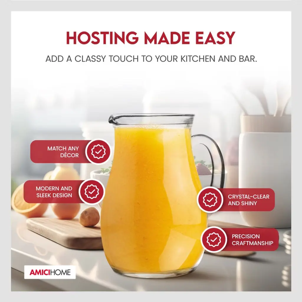 Amici Home Roxy Glass Party Pitcher With Handle & Spout - 17 Oz Clear Drink Jug For Lemonade, Iced Tea, Sangria, Cocktails, Or Water - Italian Made