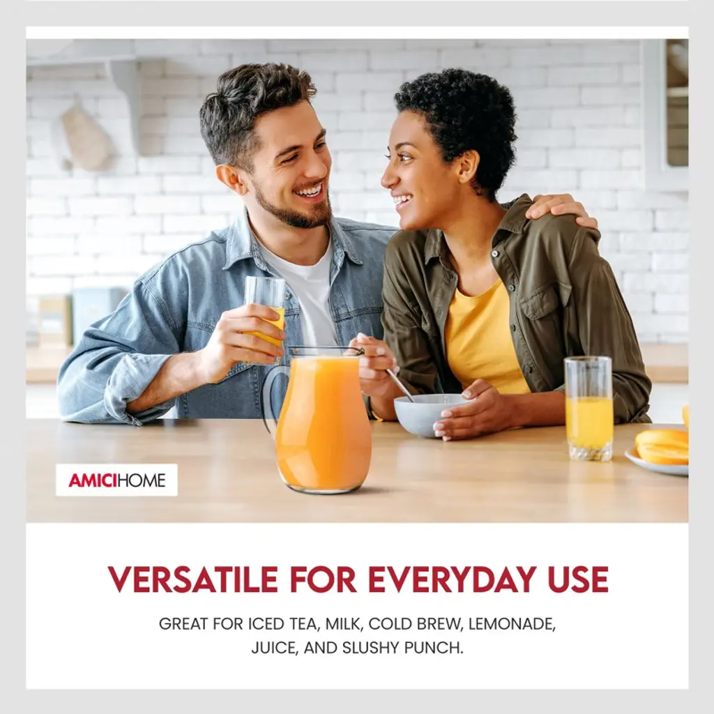 Bring refreshing style to your summer gatherings with the Amici Glass Party Pitcher. This 17 oz clear glass pitcher is the perfect size for serving lemonade, iced tea, sangria, cocktails, or sparkling water during backyard barbecues, patio dinners, or festive picnics. The sturdy handle and smoothly curved spout make pouring simple and spill-free, even when entertaining outdoors. Crafted from durable clear glass, this pitcher highlights colorful seasonal drinks, adding to the festive atmosphere of summer entertaining. Its compact capacity is convenient for serving small groups or offering individual pitchers for guests at parties. Lightweight yet reliable, it easily moves from kitchen prep to patio serving. Expertly made in Italy, this glass jug reflects traditional craftsmanship while bringing functionality to modern entertaining. Its sleek transparent design makes it a versatile tabletop piece, blending seamlessly with summer serveware and outdoor table settings. It can even be repurposed as a small vase or centerpiece accent when not in use. Cleaning is quick and easy, as this summer glass pitcher is dishwasher safe. To maintain clarity, avoid abrasive sponges and sudden temperature changes. Whether used for brunches, barbecues, garden parties, or casual evenings on the patio, the Amici Glass Party Pitcher is a must-have for summer entertaining, combining elegance, practicality, and seasonal charm.