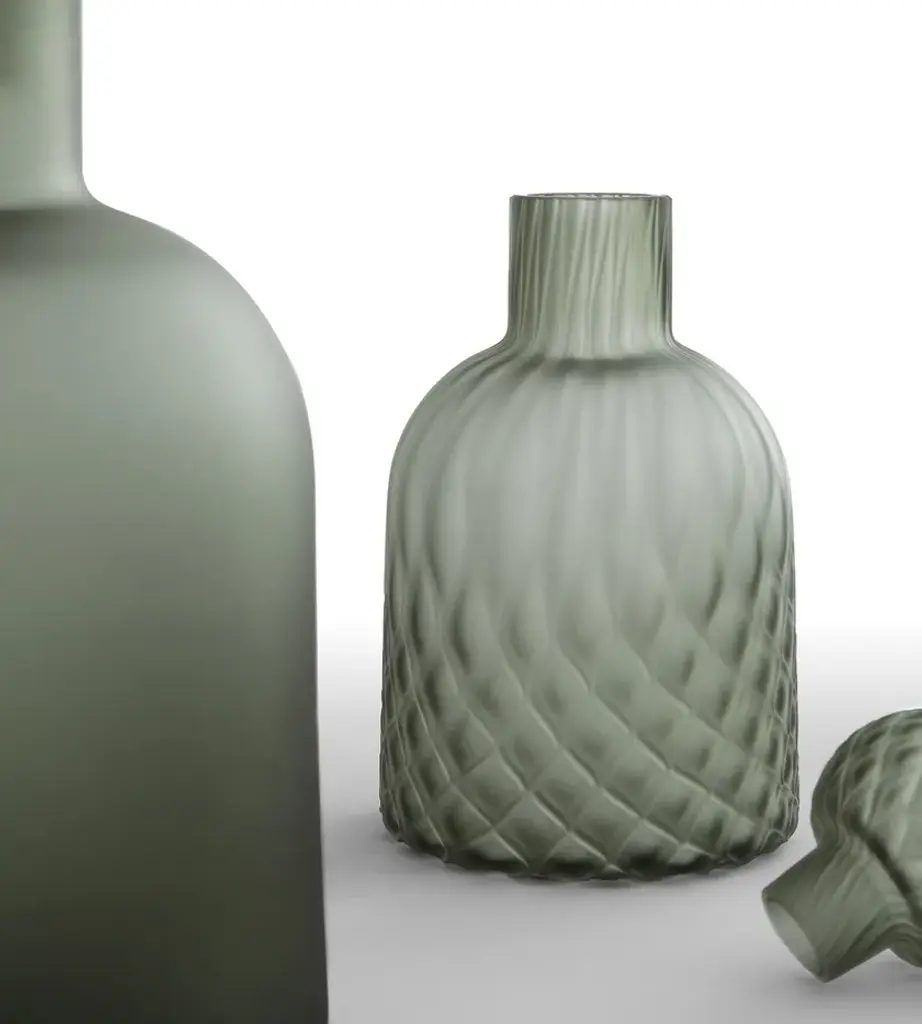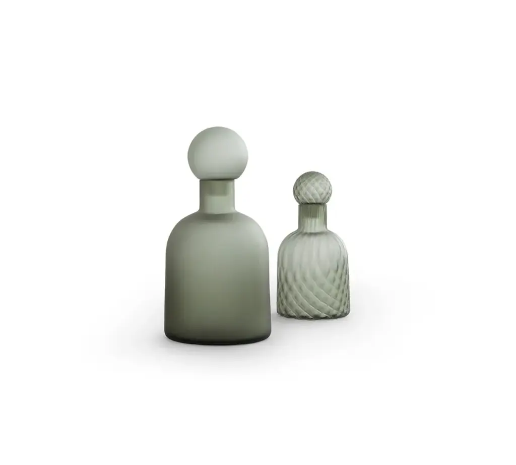AMPOLLA SATIN BALLOTON is a mouth-blown bottle created using smoked etched glass, including stopper, and crafted using the Balloton technique. The mouth-blown glass is embellished with an etched effect on this 70s ampoule to be used as a decorative object and flower vase.The Enjoy Collection is Morica Design’s most sparkling, dynamic collection. The items are lively, inspired by nature, and find their soul in the pastel shades that blend and play with the wood in an original, fresh manner. The distinctive feature of Enjoy Collection is the use of color, declined in functional furnishings and contemporary mood. Modern and refined products made with high quality materials and handcrafted in Italy.