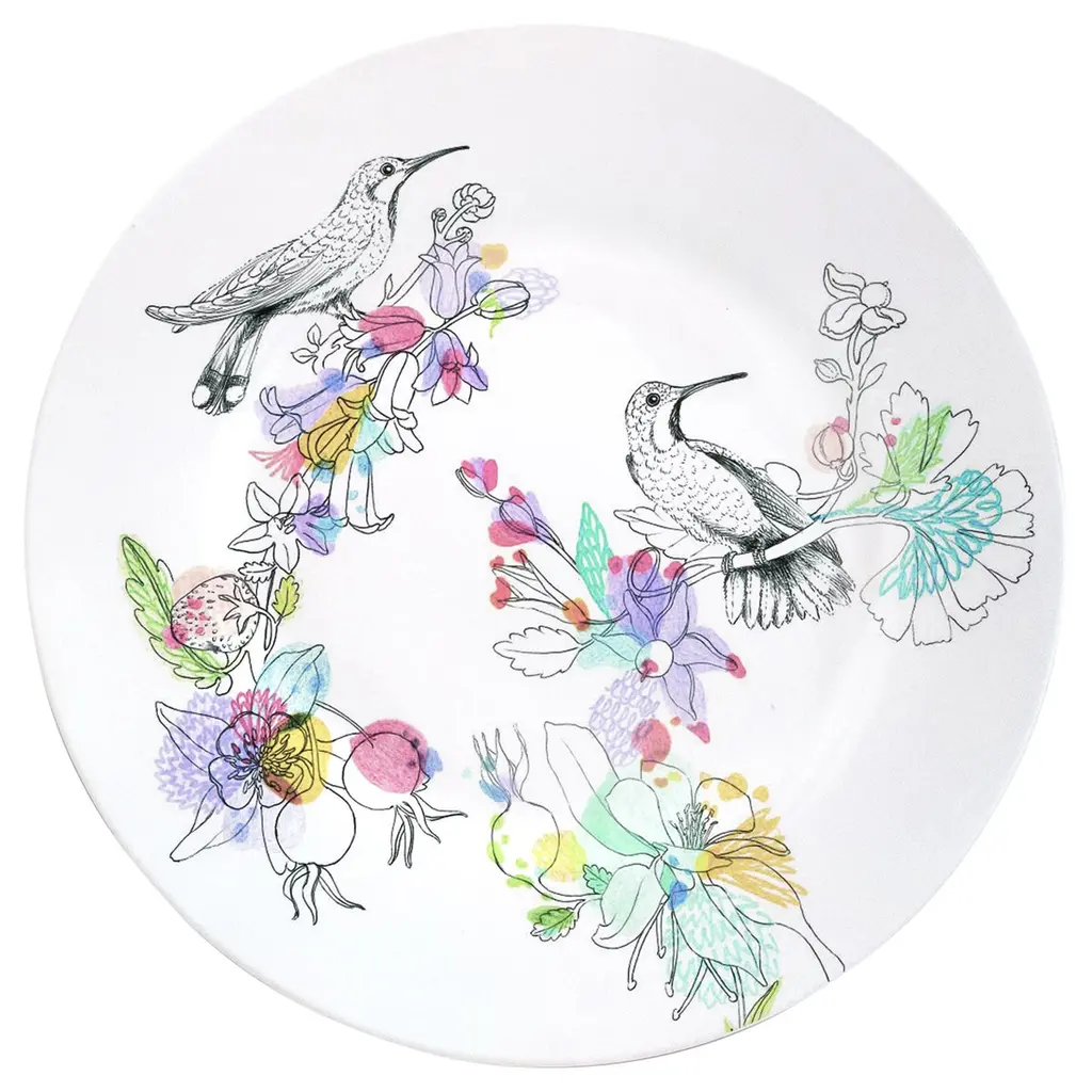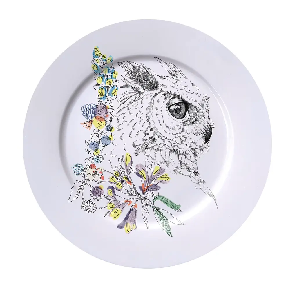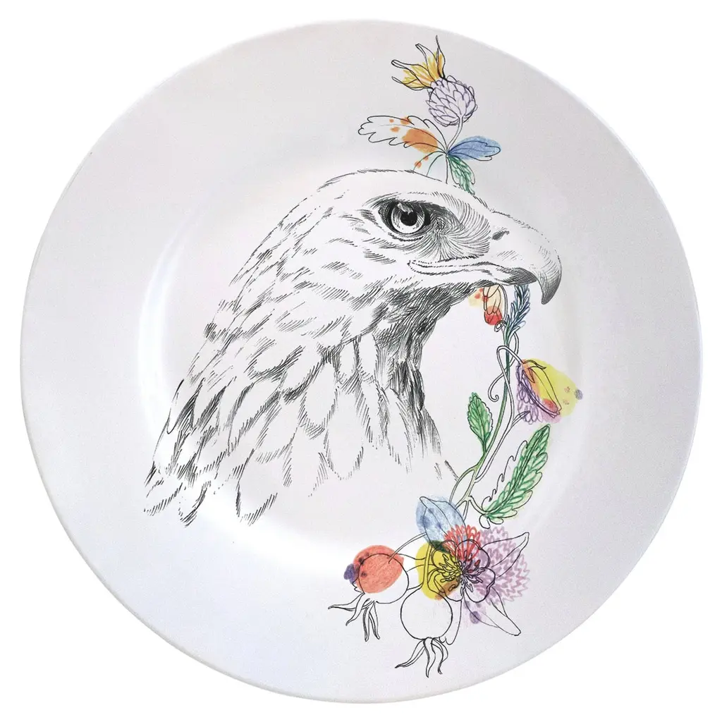 Part of the An Ode To The Woods Collection, this marvelous dinner plate is handcrafted from fine white porcelain and painstakingly handpainted for a truly unique result. Wildflowers and leaves accented with blotches of vivid, polychrome enamels surround a central, sketched trout obtained from thin, black brushstrokes. Oven and dishwasher safe, it comes in multiple animal options, all pairing well with pieces from the Grandma's Garden Collection.