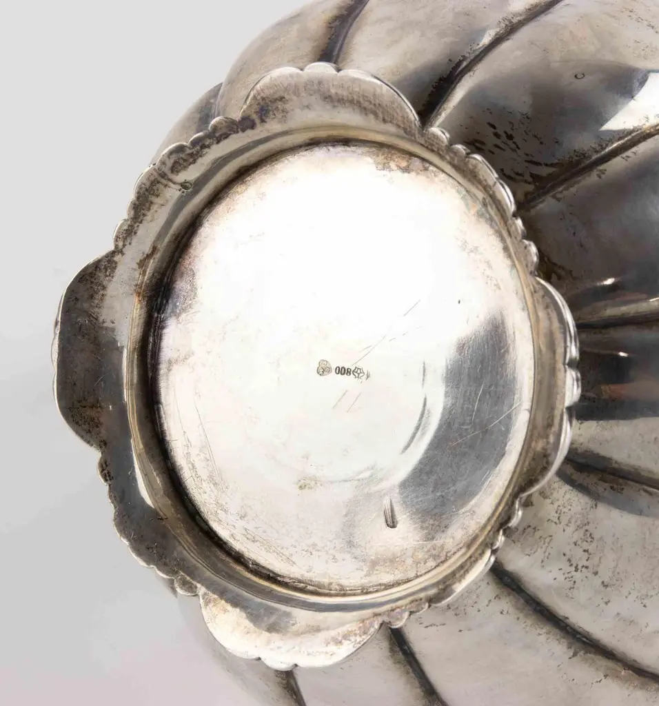 19th century silver 800 set comprising a coffee pot, a tea pot, water or milk Jug and a sugar bowl.Ebonized wood handles.Very good condition.