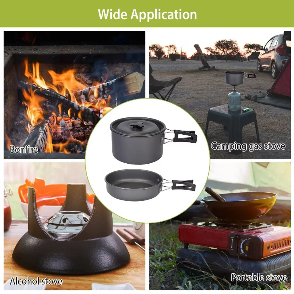 Angel Sar 12-piece Camping Cookware Set, Aluminum Pot Pan Kit With Foldable Cutlery, For Outdoor Camping Hiking Picnic, 2-3 Person