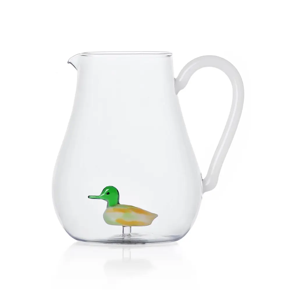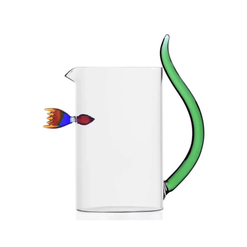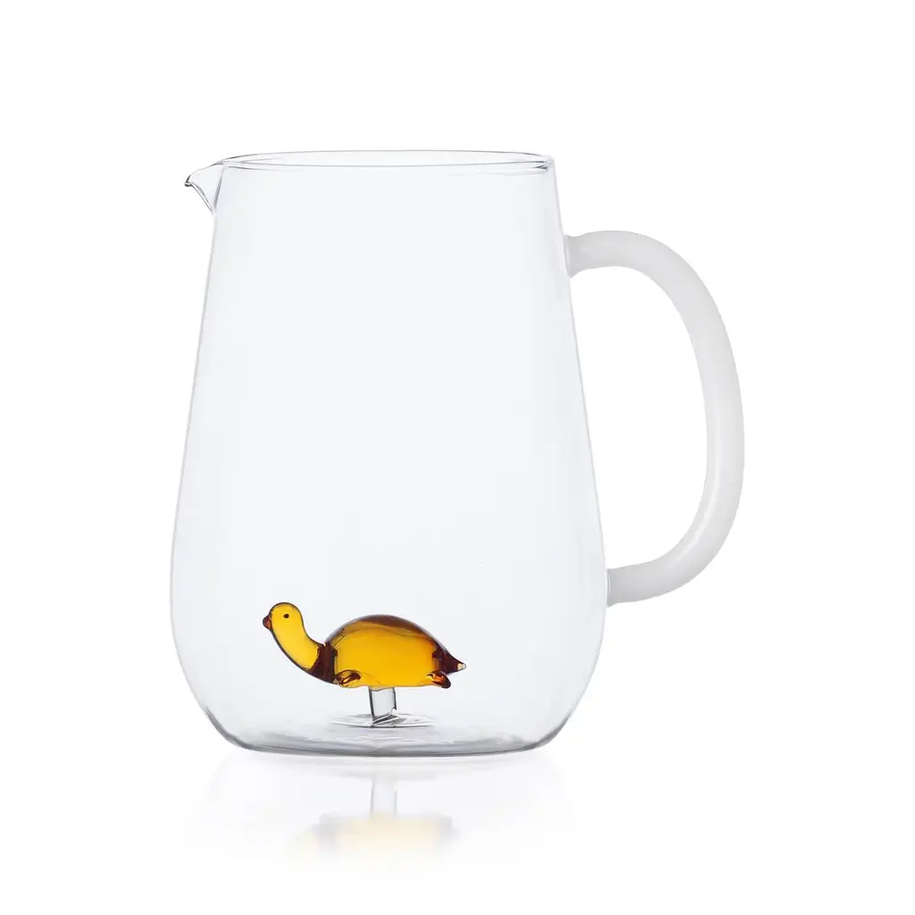 Playful and practical, the Animal Farm Pitcher from Ichendorf Milano features a tiny glass animal sculpted within — a joyful surprise that delights with every use. Its curved silhouette and wide handle make pouring effortless. Perfect for lemonades, teas, or serving smiles at the table. Highlights