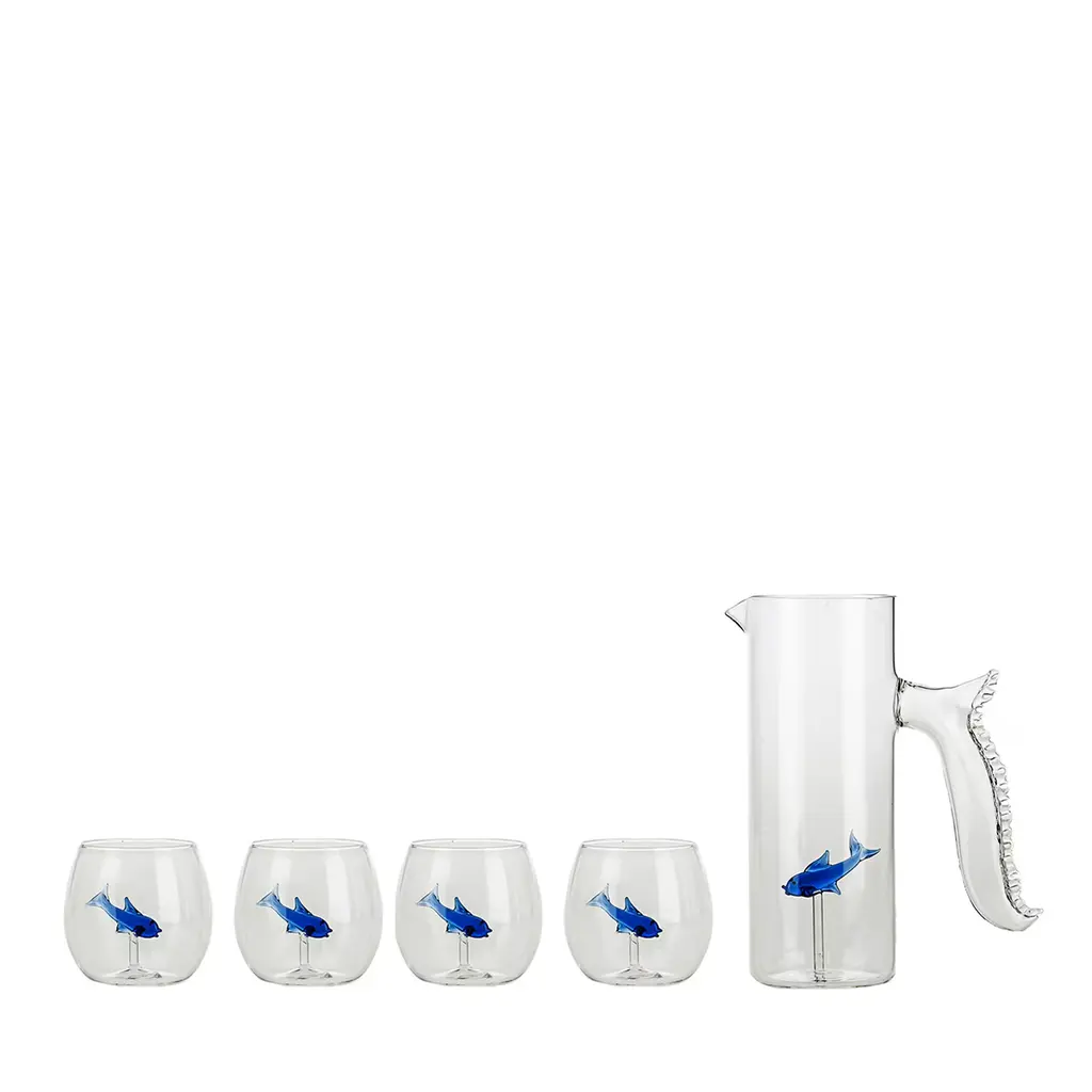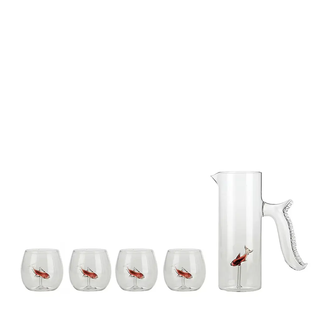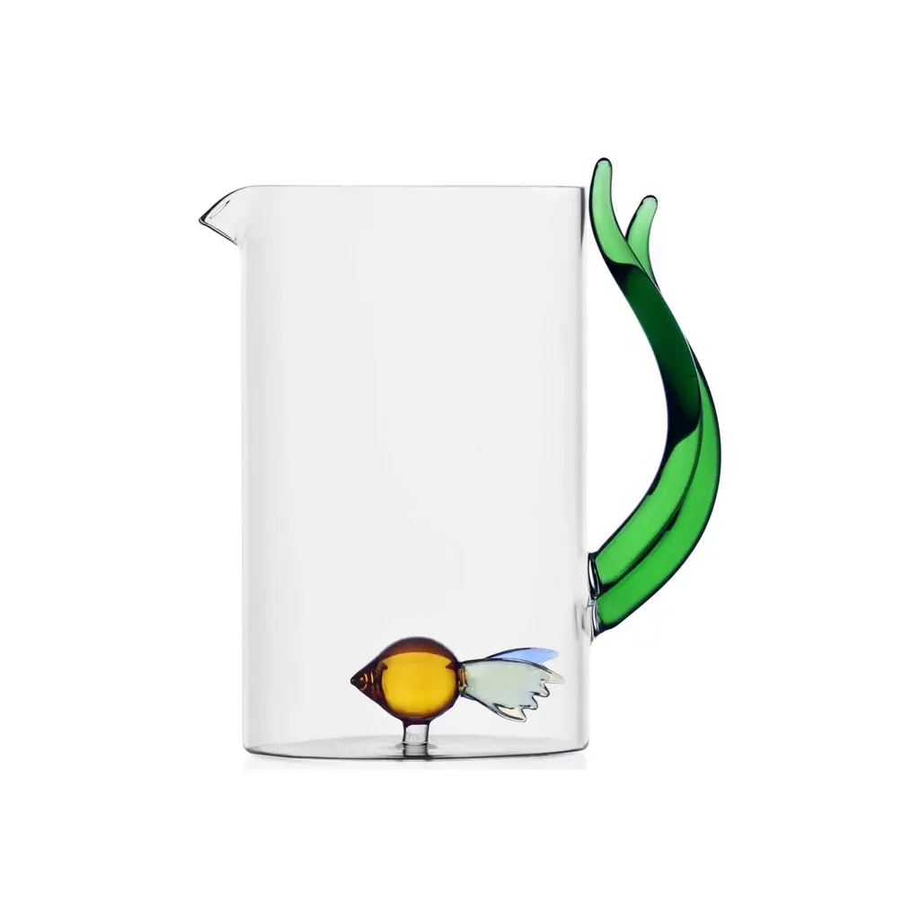 Playful and practical, the Animal Farm Pitcher from Ichendorf Milano features a tiny glass animal sculpted within — a joyful surprise that delights with every use. Its curved silhouette and wide handle make pouring effortless. Perfect for lemonades, teas, or serving smiles at the table. Highlights