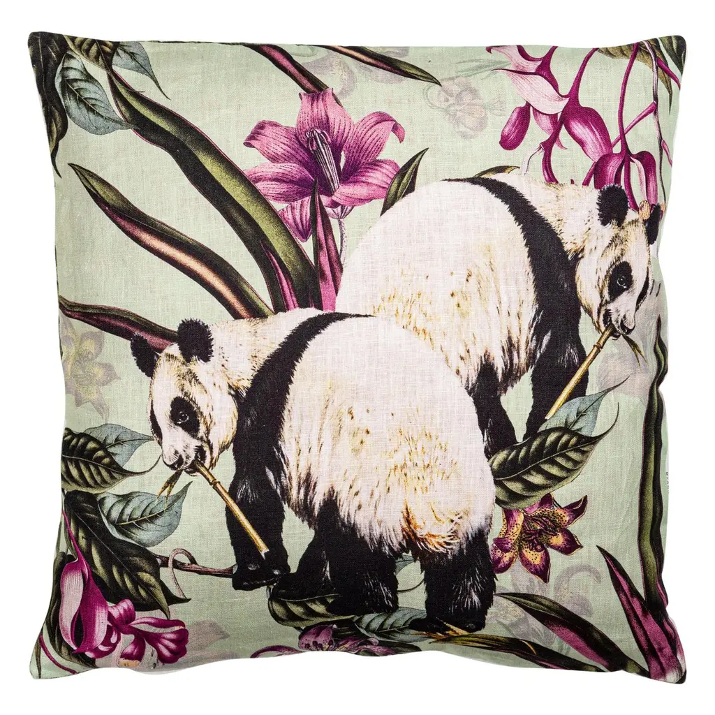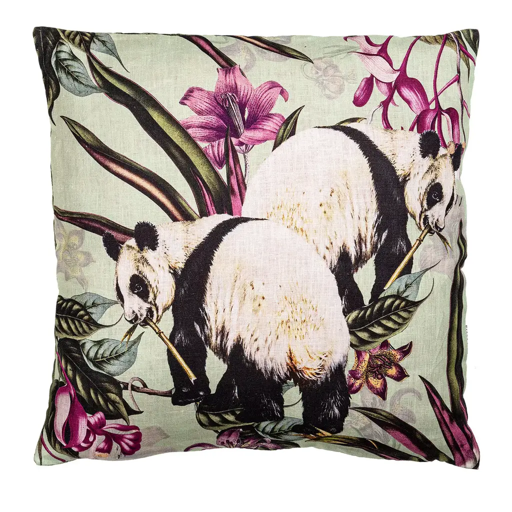 Part of the Animalia series from Vito Nesta's signature Grand Tour Collection, this porcelain fruit plate is distinguished by an exquisite representation of a panda eating out of a splendid tropical plant with purple flowers elegantly contrasted to a pastel green backdrop lending it a delicate quality.