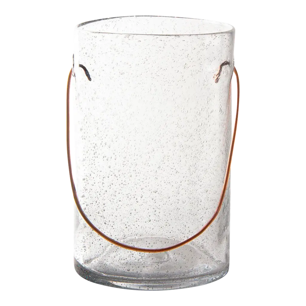 This glass ice bucket is handcrafted to display terrifically bubble pattern floating in its walls. This ice bucket has a bubbly charm and festive personality that is suitable for any occasion.