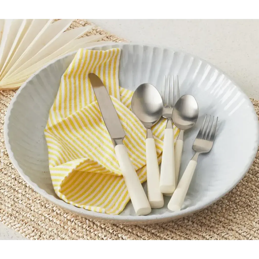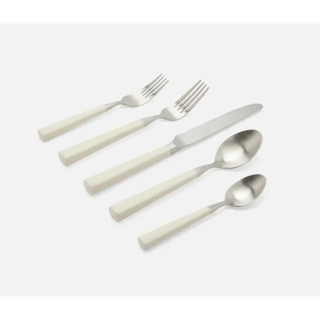 Annalise boasts a complete well-crafted stainless steel, 5-piece flatware set—finished with smooth matte white acrylic handles. Blue Pheasant's products are handmade with care by artisans using natural materials. They are not mass produced, so variation between products should be expected, and this is why we love them! It is these irregularities that makes Blue Pheasant what it is—a special brand whose collections are distinctly handmade, full of charm and originality you’ll never find in machine-made products.