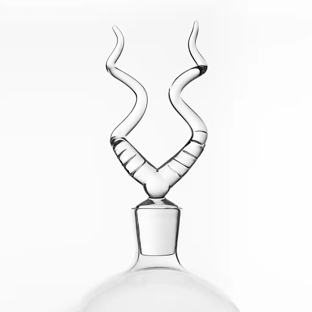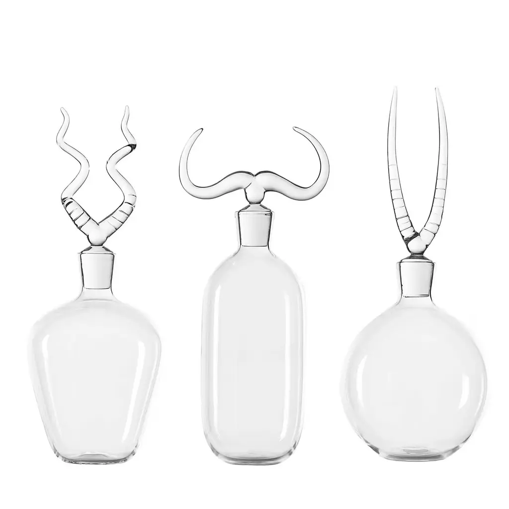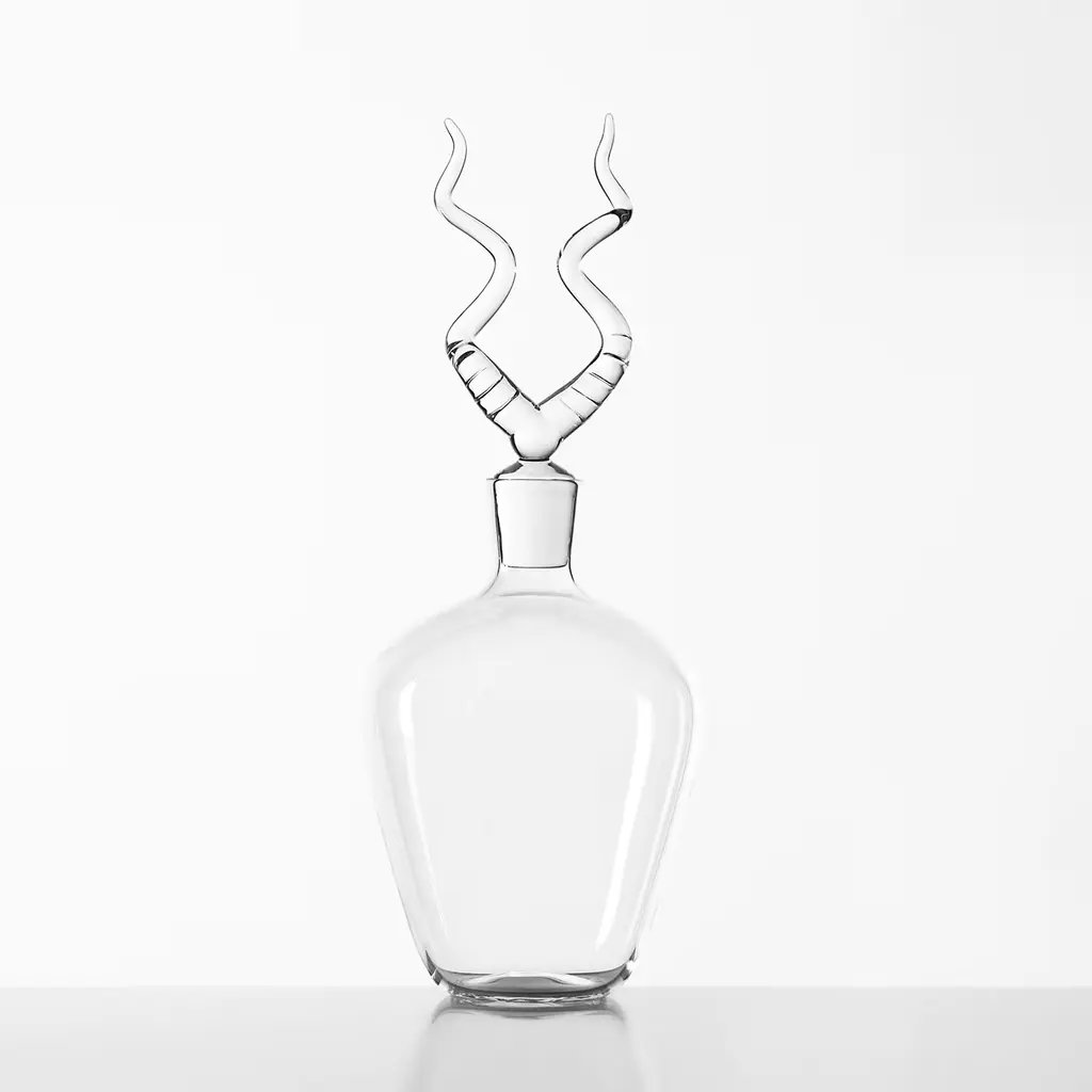 Part of a series that celebrates wild African landscape and fauna, this stunning glass bottle is marked by a unique cap enriched with the elegant and eclectic horns of an antelope. This exquisite piece will enliven a contemporary decor with vivacious sophistication.