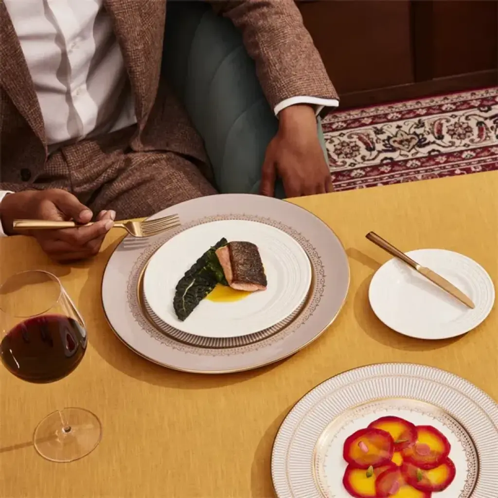Bring a sleek expression of luxury to your dining table with this Anthemion Grey Dinnerware. Crafted from fine bone china, this has a classic colonnade patterned border in warm grey with neoclassical motifs, adding that traditional touch of luxury to your mealtimes. Made at our factory in England, this plate is finished with 22-carat gold detailing for that extra indulgence, complete the dazzling grey and gold look with other pieces from the Anthemion Grey collection.