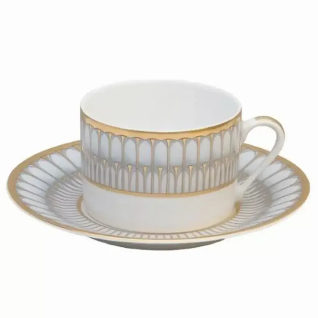Bring a sleek expression of luxury to your dining table with this Anthemion Grey Dinnerware. Crafted from fine bone china, this has a classic colonnade patterned border in warm grey with neoclassical motifs, adding that traditional touch of luxury to your mealtimes. Made at our factory in England, this plate is finished with 22-carat gold detailing for that extra indulgence, complete the dazzling grey and gold look with other pieces from the Anthemion Grey collection.