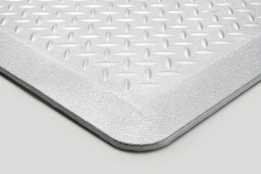 Anti-Fatigue Floor Mat, Tread Plate Pattern 24"x36"x2/3", Silver, Set Of 1