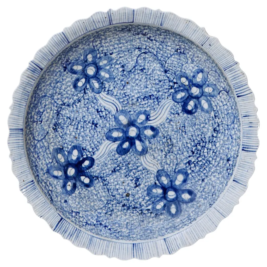 Antique Flow Blue Serving Bowl