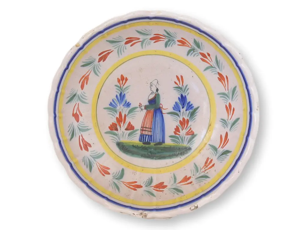 French Quimper serving bowl with an unusual pale dusty rose color. This is an early piece from around 1900. Maker's mark on underside. Light wear.
