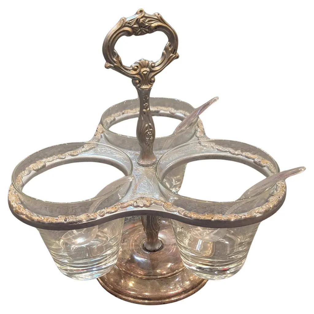 Antique Silver Egg Coddler Stand Holder Set Of 4 Egg Holder With 4 Silver Spoons