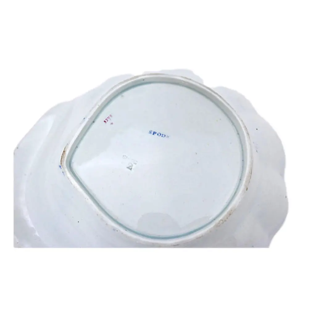Antique Spode serving dish with hand-enameled coloring and gilding. Maker's mark on underside. Light wear, flakes to color on edge.