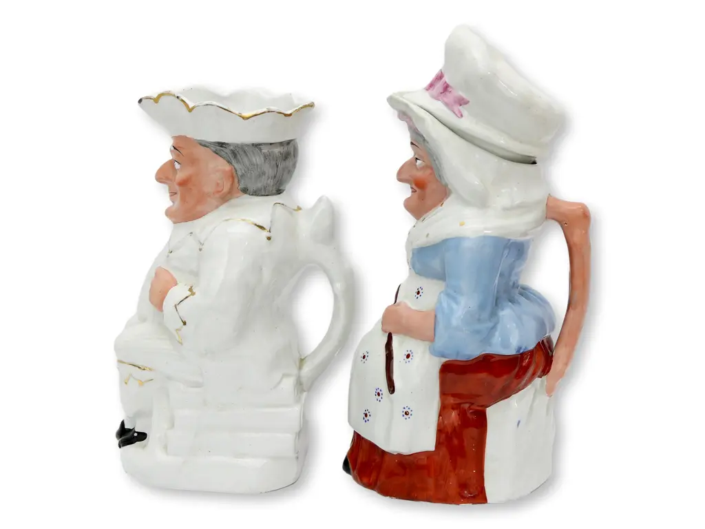 Antique Staffordshire Punch & Judy Jugs