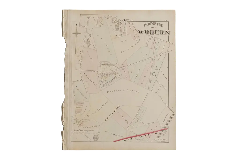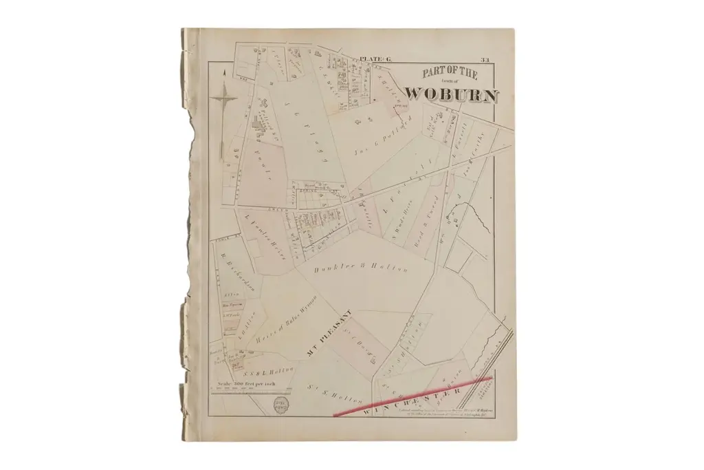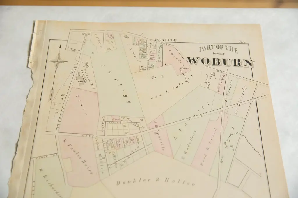 Antique Woburn Massachusetts Atlas Map Plate G