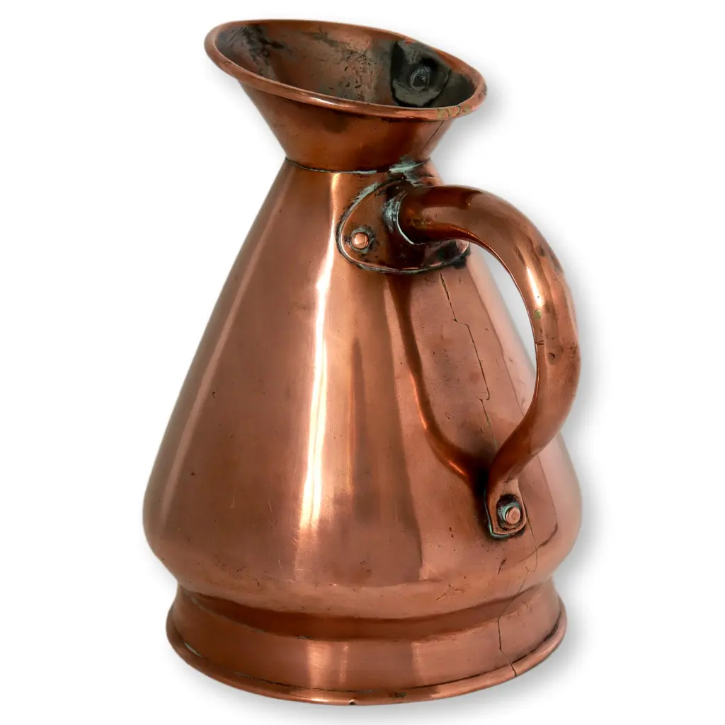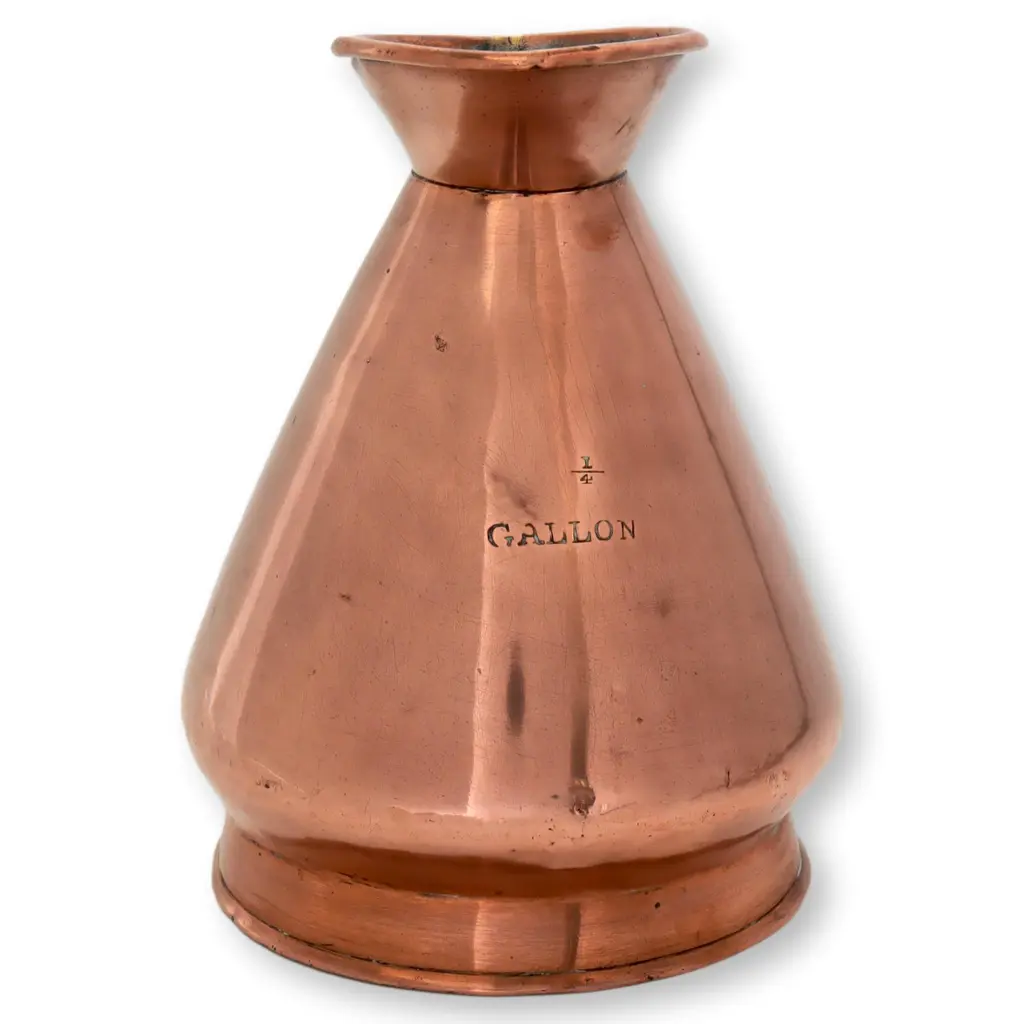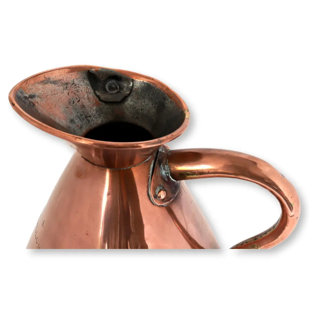 Antique English copper 1/4 gallon volume ale jug. Unsigned.