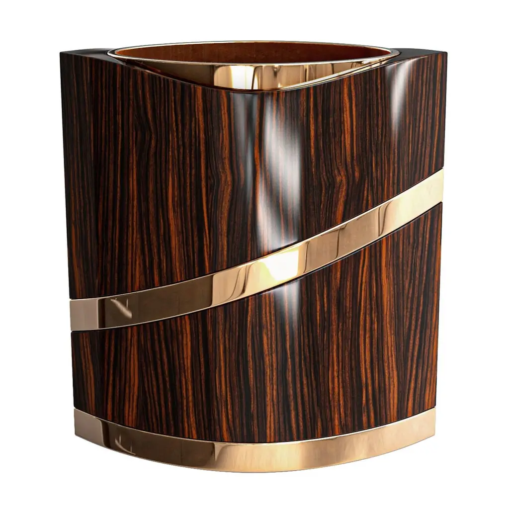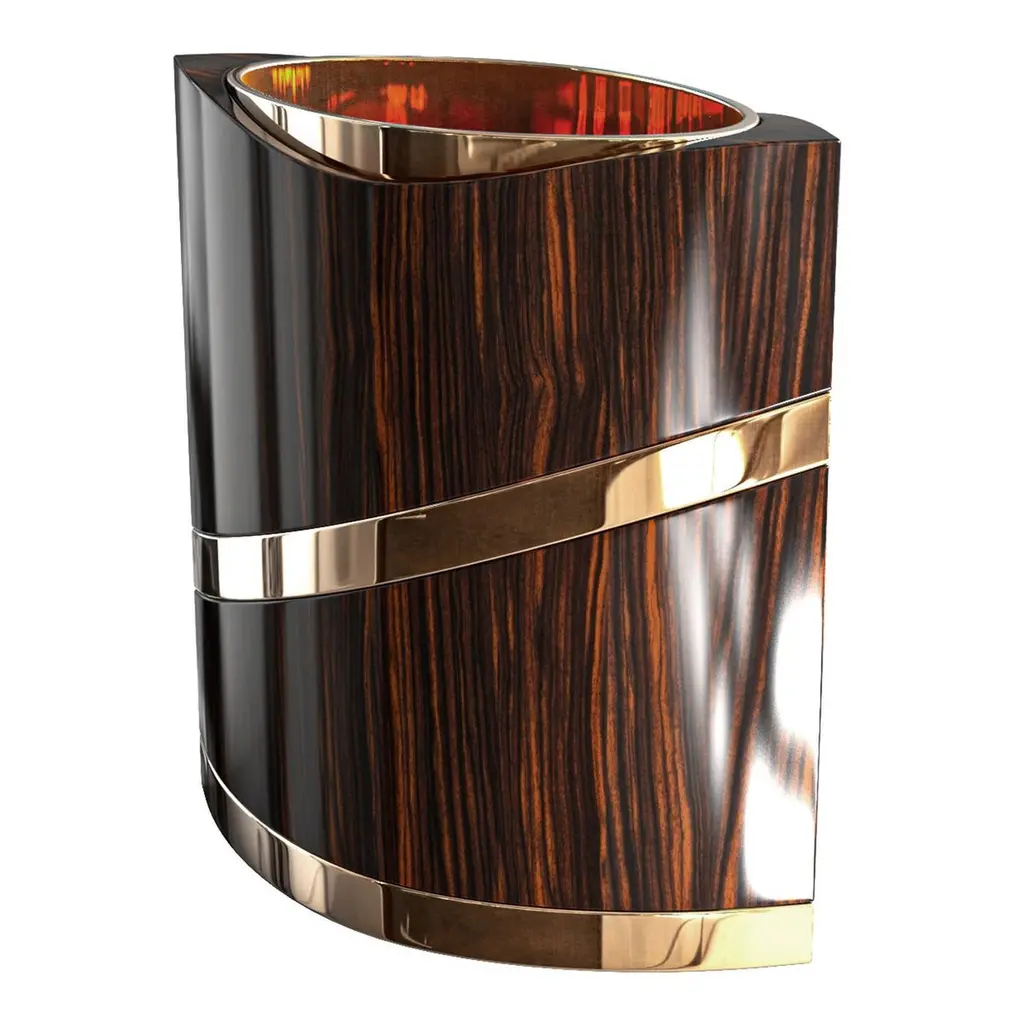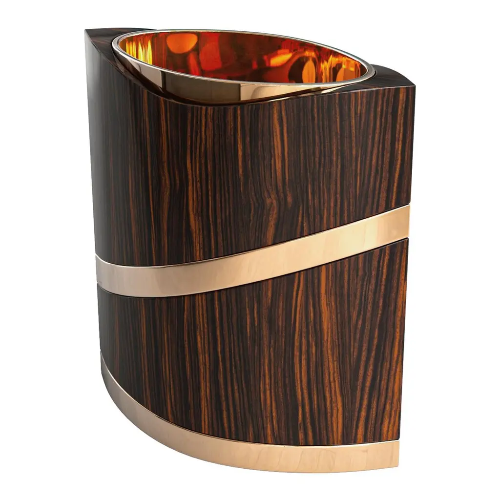"Arcadia" Ice Bucket With Bronze And Finely Crafted Wood, Handmade, Istanbul