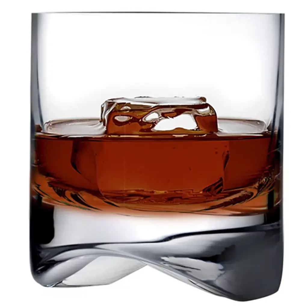 The Arch Whisky Glasses, Set of 2 from Nude brings whimsical character to traditional drinkware through beautifully curved bases that create delightful light reflections in swirling patterns. Designed by Ali Bakova and crafted in Turkey from lead-free crystal, each glass features a heavy-bottomed profile with sculptural foundation design. The curved base reflects and refracts light in dynamic swirls while maintaining classic whisky glass proportions. This set combines traditional drinking vessel form with contemporary aesthetics, making each sip enhanced by the interplay of crystal and light.